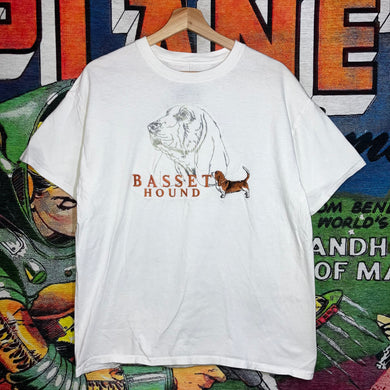 Vintage 90s Basset Hound Embroidered Art Tee Size Lg