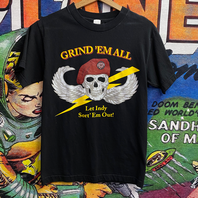 Vintage 90s Independent Trucking Co. Skateboard Grind ‘Em All Skull Tee Shirt size Small