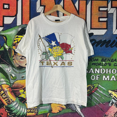 Vintage 90s Texas Glitter Gold Tee Size Large