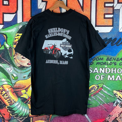 Y2K 2008 Harley Davidson Auburn, MASS Graphic Pocket Tee Size L
