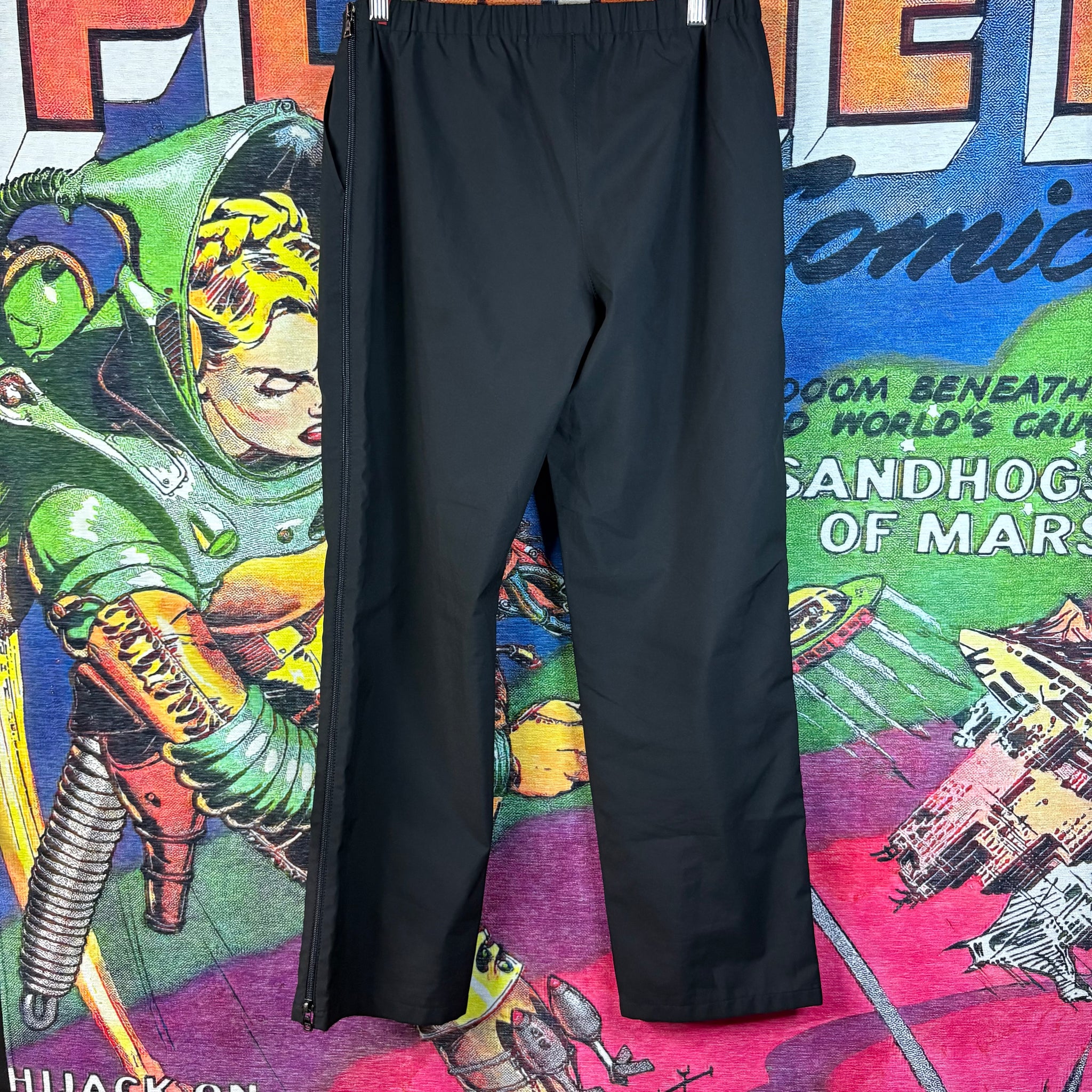 black Prada sweatpants featuring a sleek, luxury streetwear design. Made from high-quality fabric with a relaxed fit and tapered legs, these sweatpants combine comfort with premium style, perfect for layering or rocking solo in an elevated Y2K streetwear look.