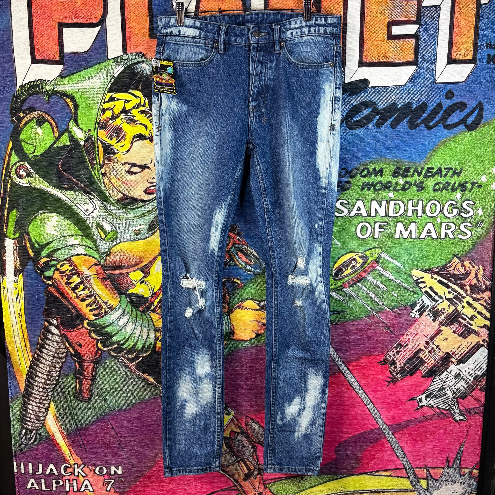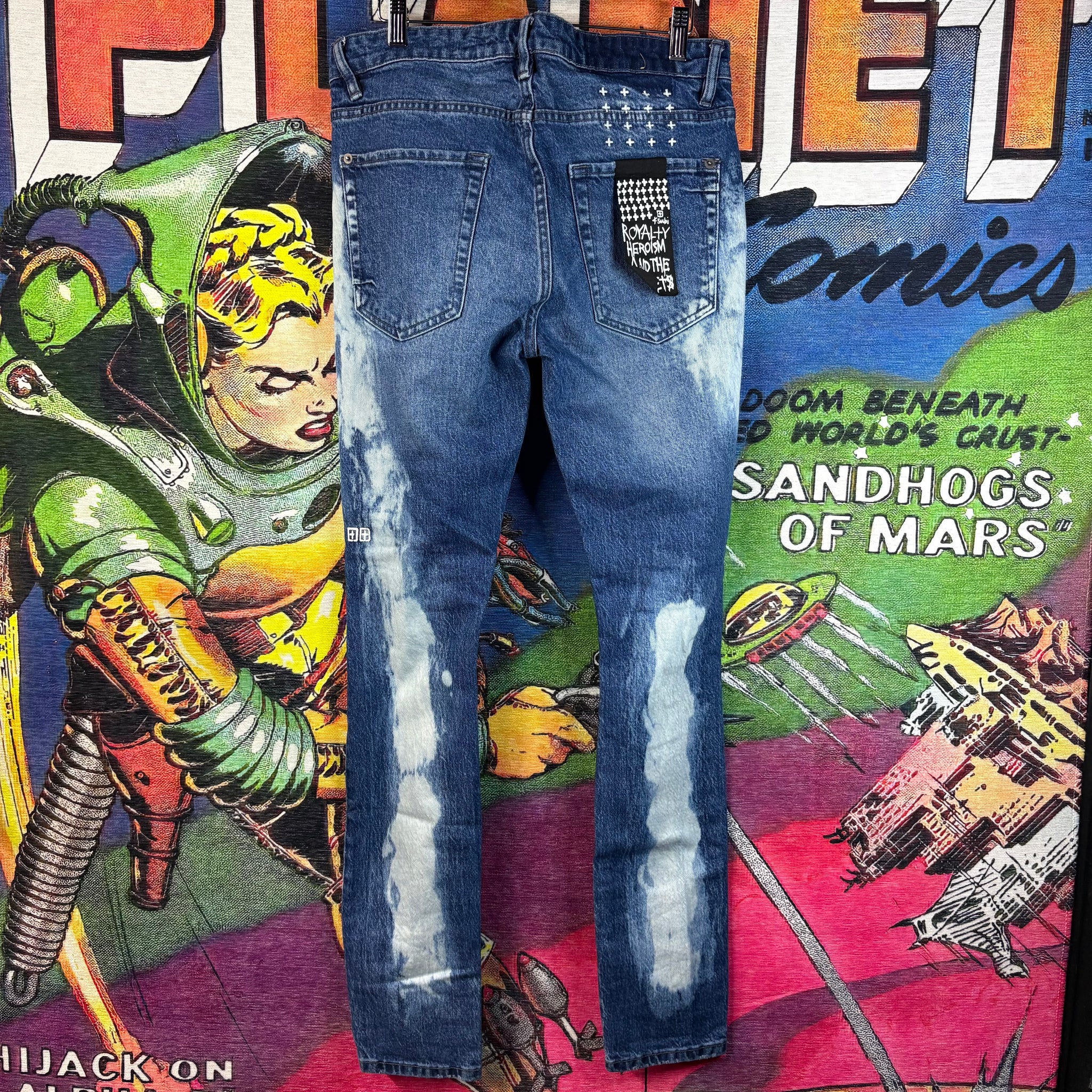 Ksubi Van Winkle skinny-fit jeans in a mid-rise cut with signature distressed detailing. Crafted from premium denim with a tapered leg and snug fit, these jeans offer an edgy, modern streetwear look.