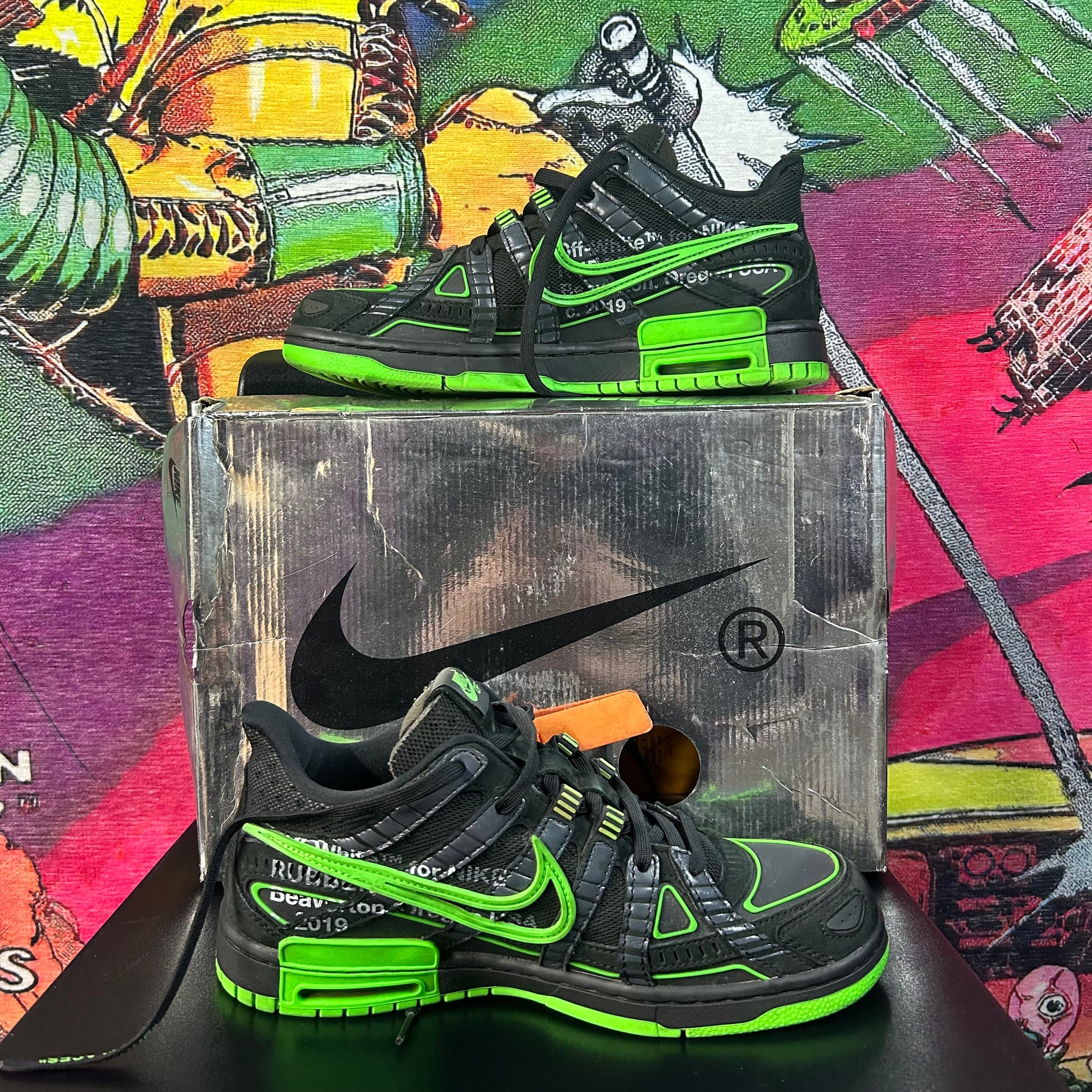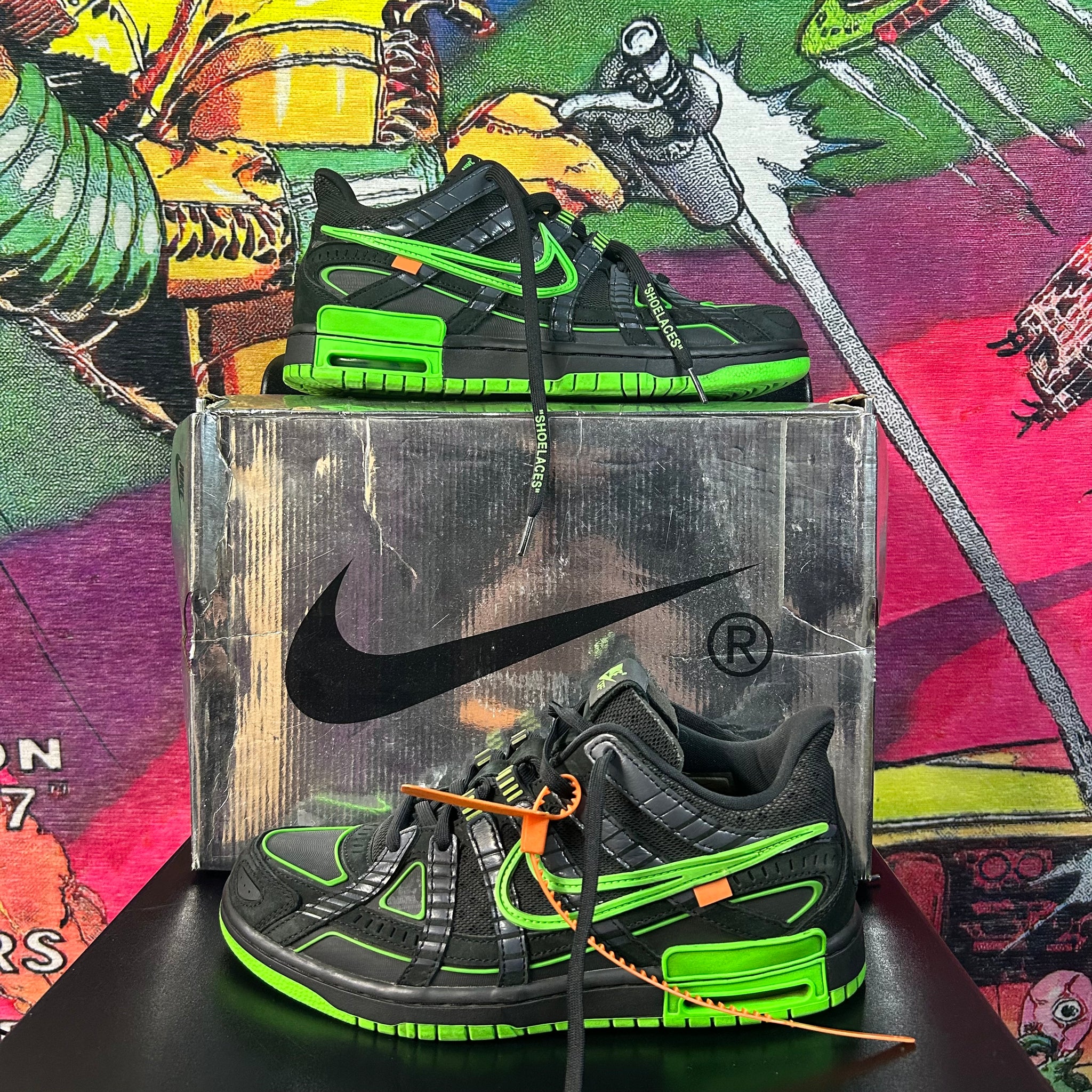 A bold collaboration between Nike and Virgil Abloh, these OFF-WHITE Rubber Dunks feature the striking “Green Strike” colorway with layered textures, exposed details, and signature industrial design elements. Built with a modern rubberized sole and deconstructed upper, they deliver a futuristic take on the classic Dunk silhouette. A must-have for OFF-WHITE collectors and sneaker enthusiasts alike.