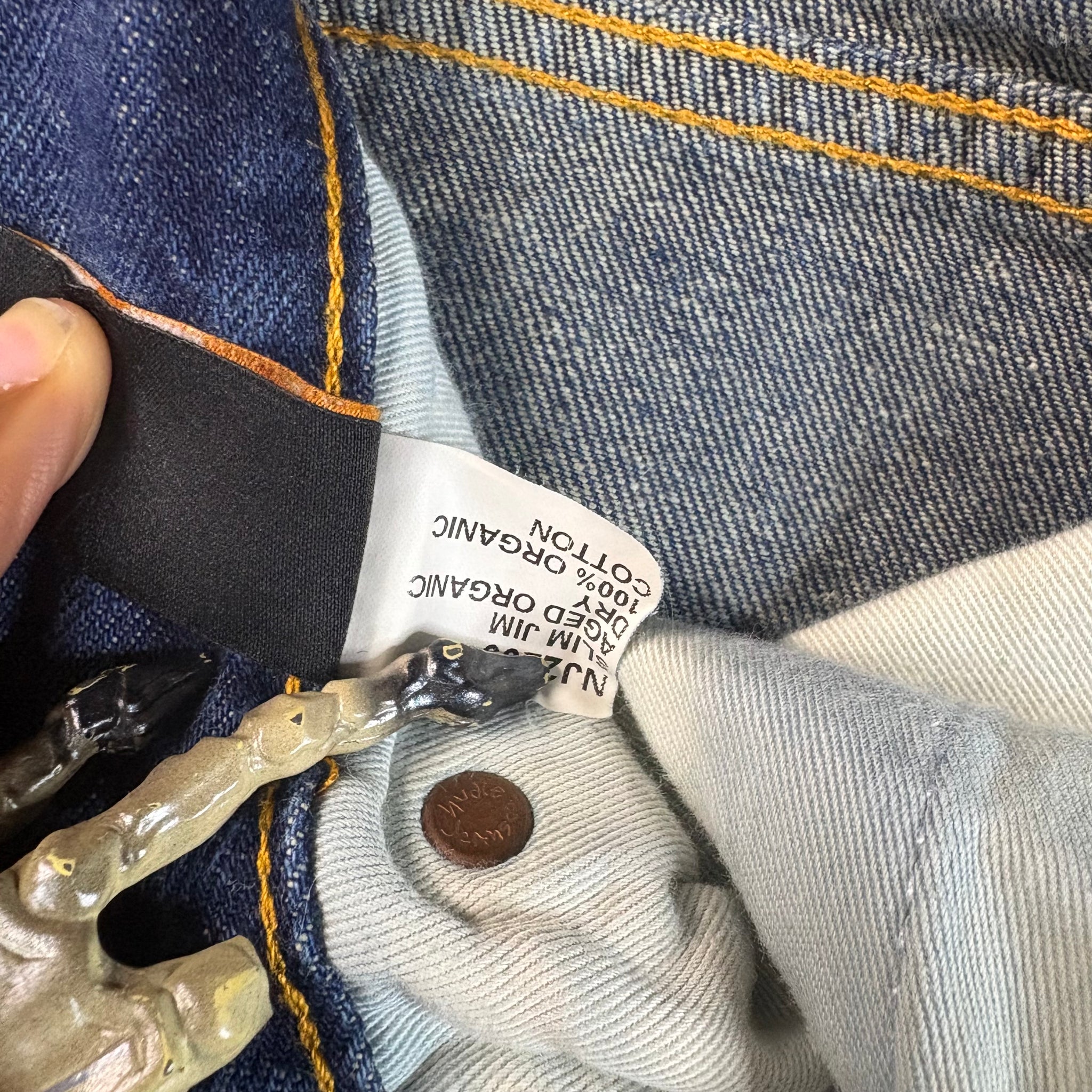 The Nudie “Slim Jim” is one of the brand’s signature slim silhouettes—clean, modern, and effortlessly wearable. Designed with a narrow fit that tapers through the leg, these jeans offer a sharp profile without losing comfort. The denim has Nudie’s classic soft, durable feel, made to age beautifully and develop natural fades the more they’re worn. A go-to pair for anyone who wants a sleek everyday jean with that authentic Nudie character.