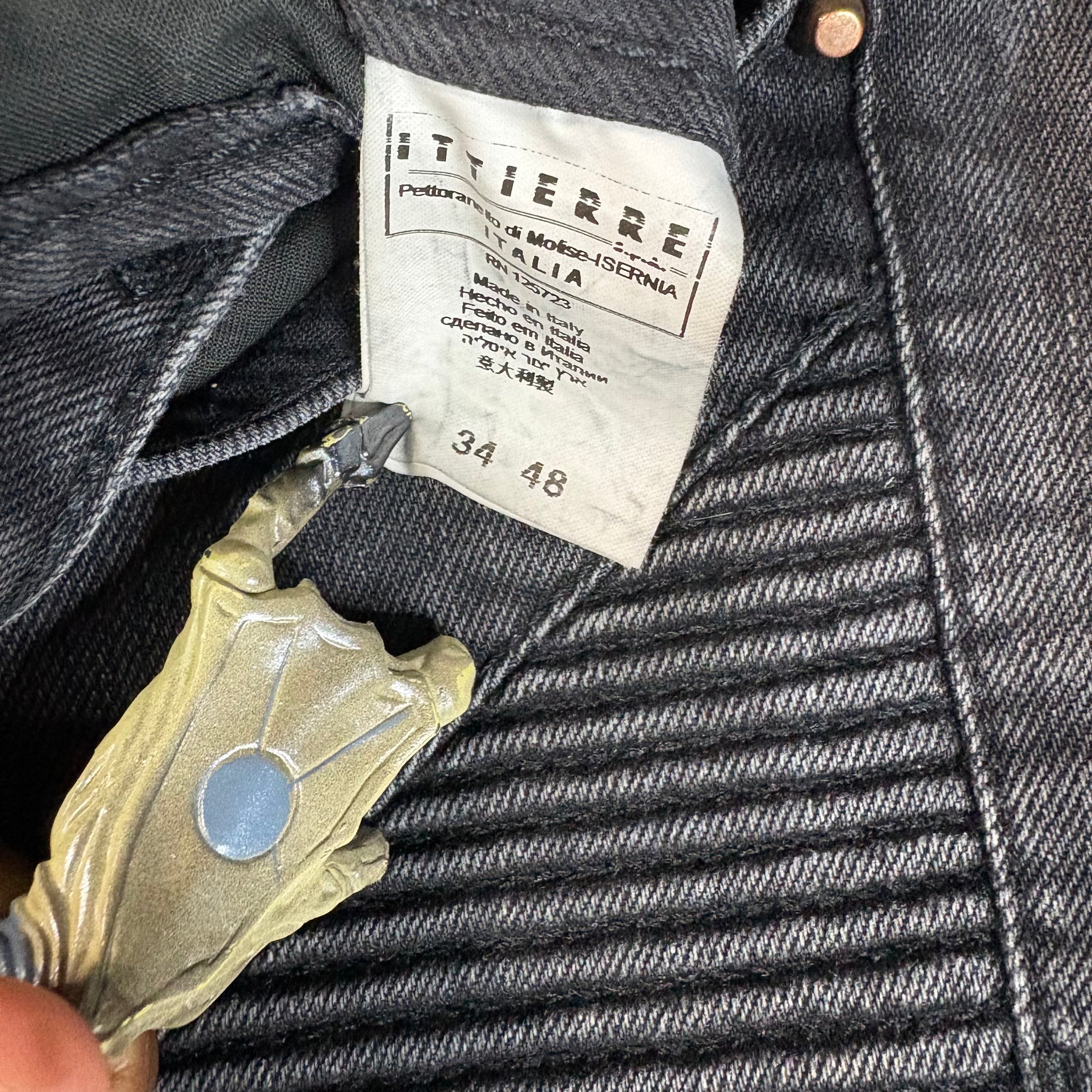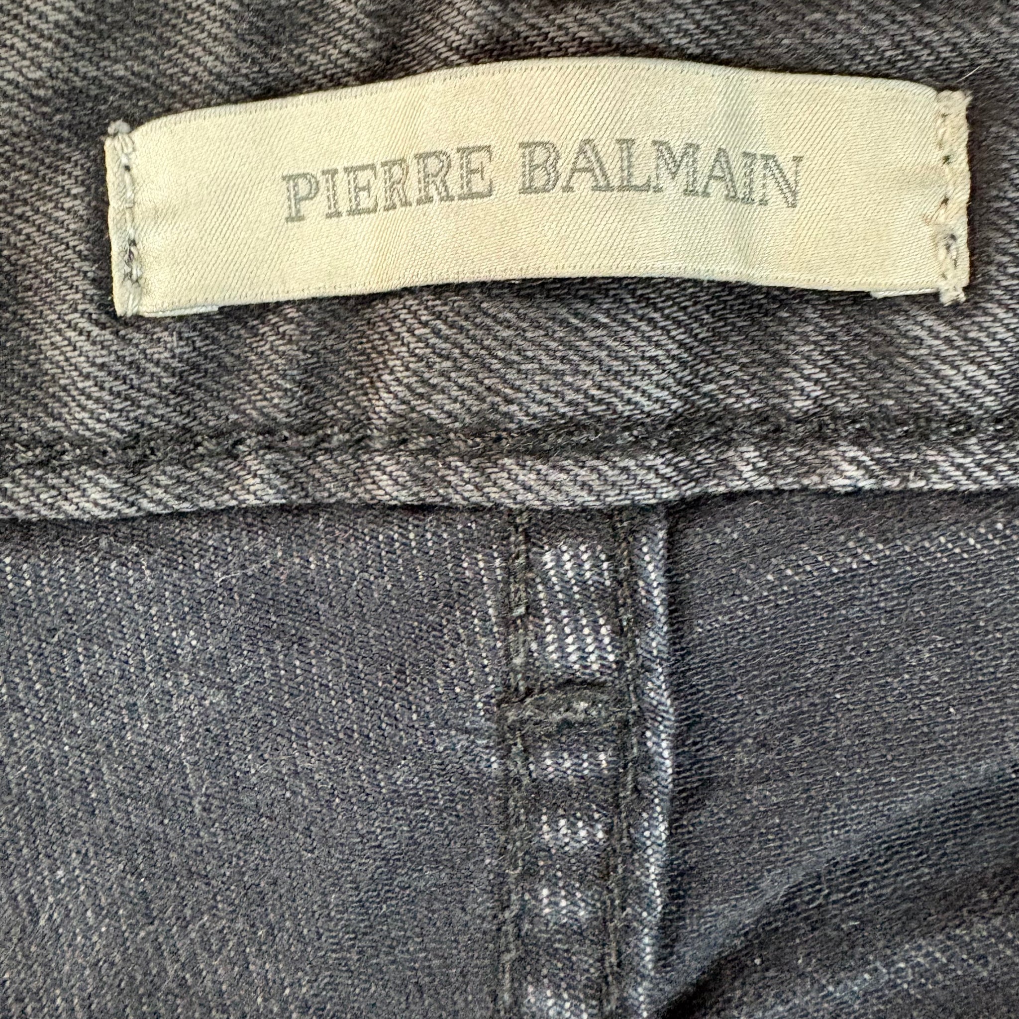 Pierre Balmain slim-fit biker jeans crafted with the label’s signature moto-inspired detailing. Made from premium stretch denim, these jeans feature ribbed knee panels, reinforced stitching, and a sleek, tapered silhouette that delivers a sharp, high-fashion edge. A standout pair that blends rock-influenced design with luxury construction—classic Pierre Balmain aesthetics.