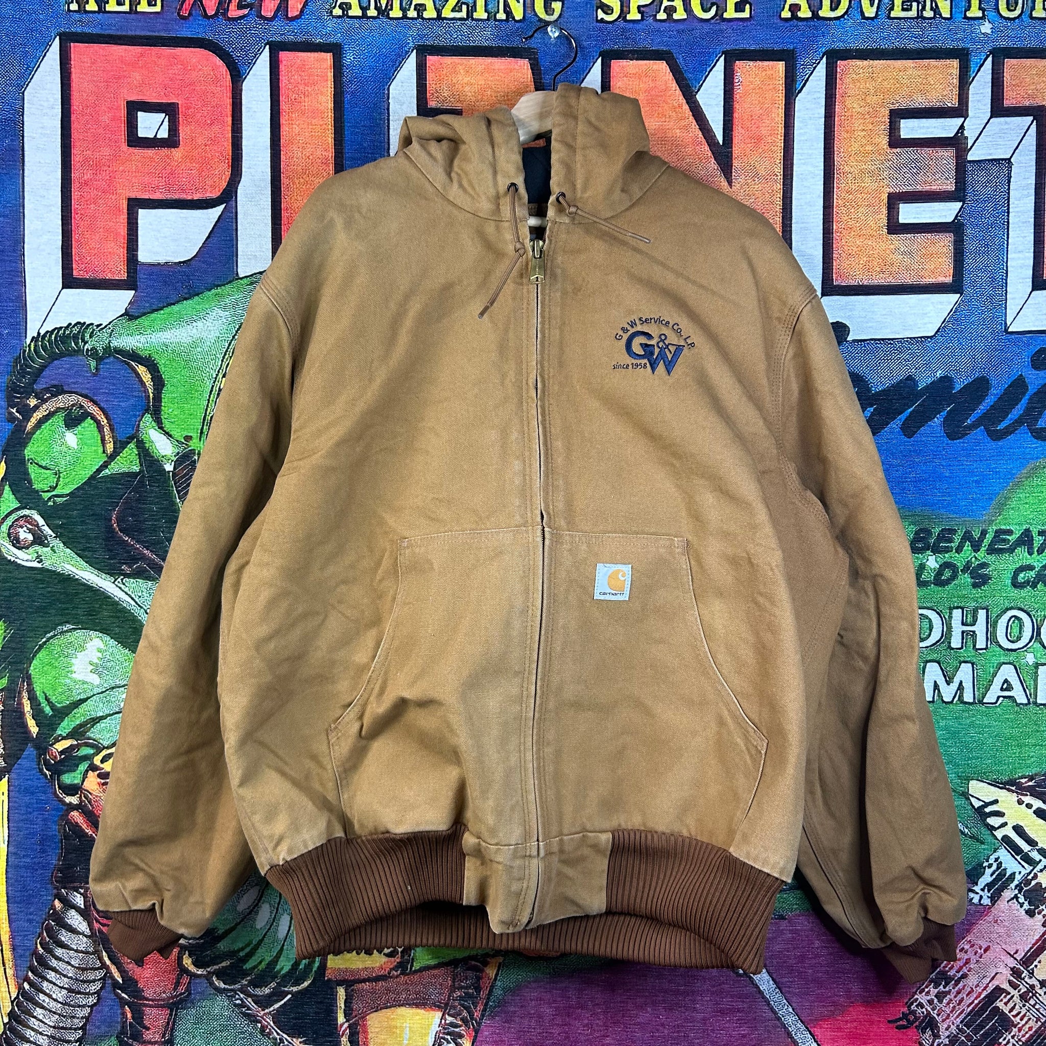 A timeless workwear piece, this Carhartt Khaki Hooded Jacket offers both style and functionality. Made from durable canvas, it features a roomy hood, practical pockets, and a relaxed fit ideal for layering. Its neutral khaki tone makes it versatile for streetwear or outdoor wear, blending classic Carhartt durability with everyday style.