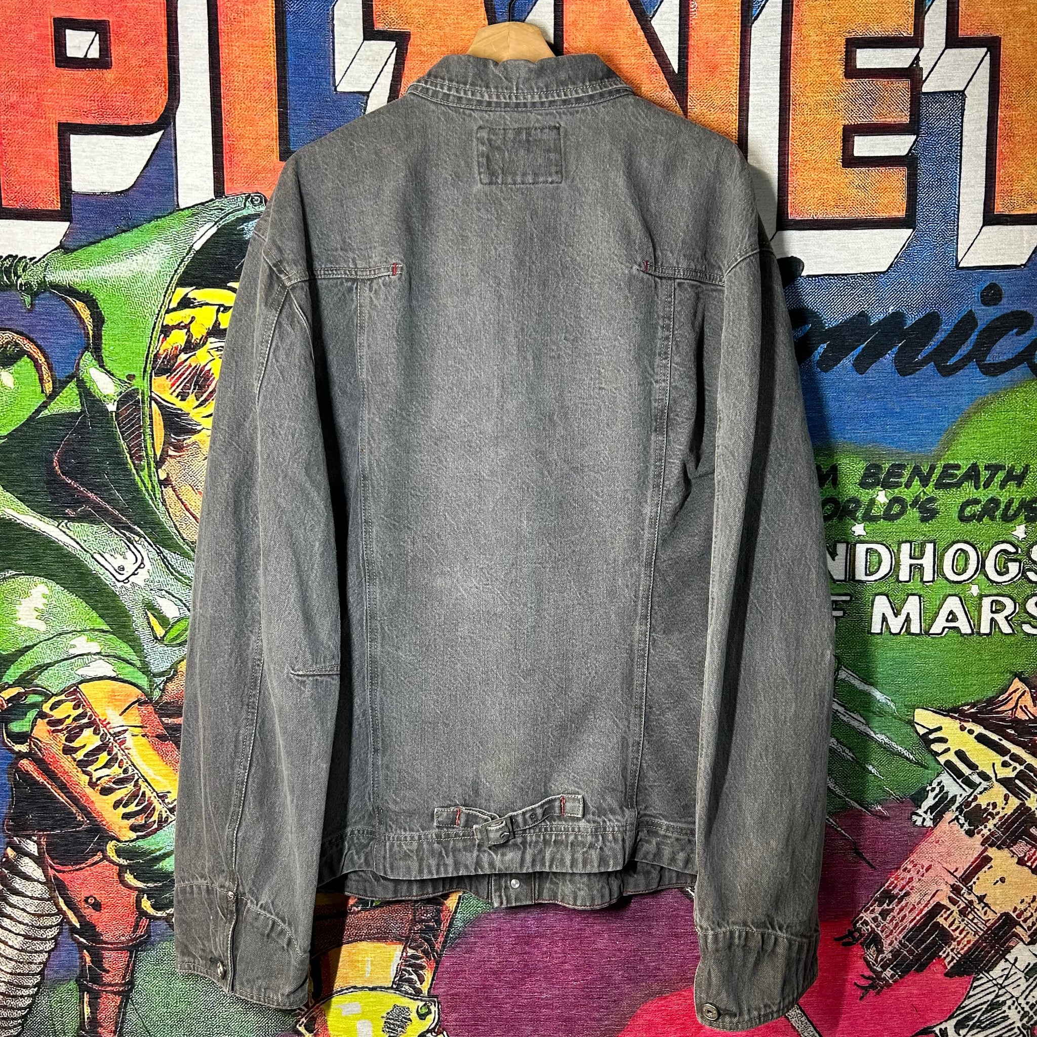 Oversized early-2000s Marithé François Girbaud denim jacket in washed grey. Features signature panel construction, utility detailing, and branded hits. Rare Y2K streetwear piece with heavy archival energy.