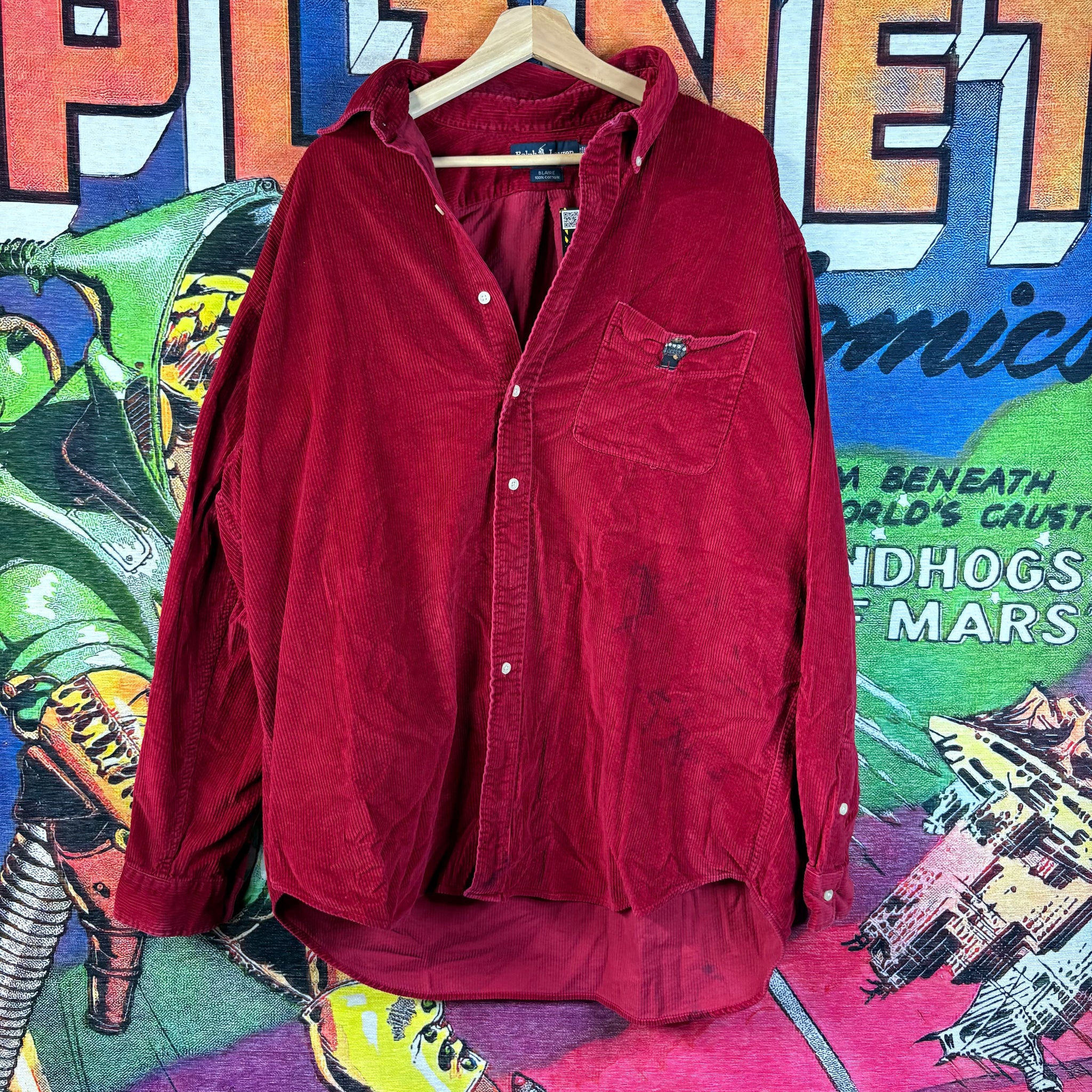 This is a Y2k Ralph Lauren red corduroy long-sleeve button-up shirt, crafted from soft, durable corduroy with a classic fit. Featuring timeless styling and rich color, it’s perfect for layering or wearing on its own for a vintage-inspired look.