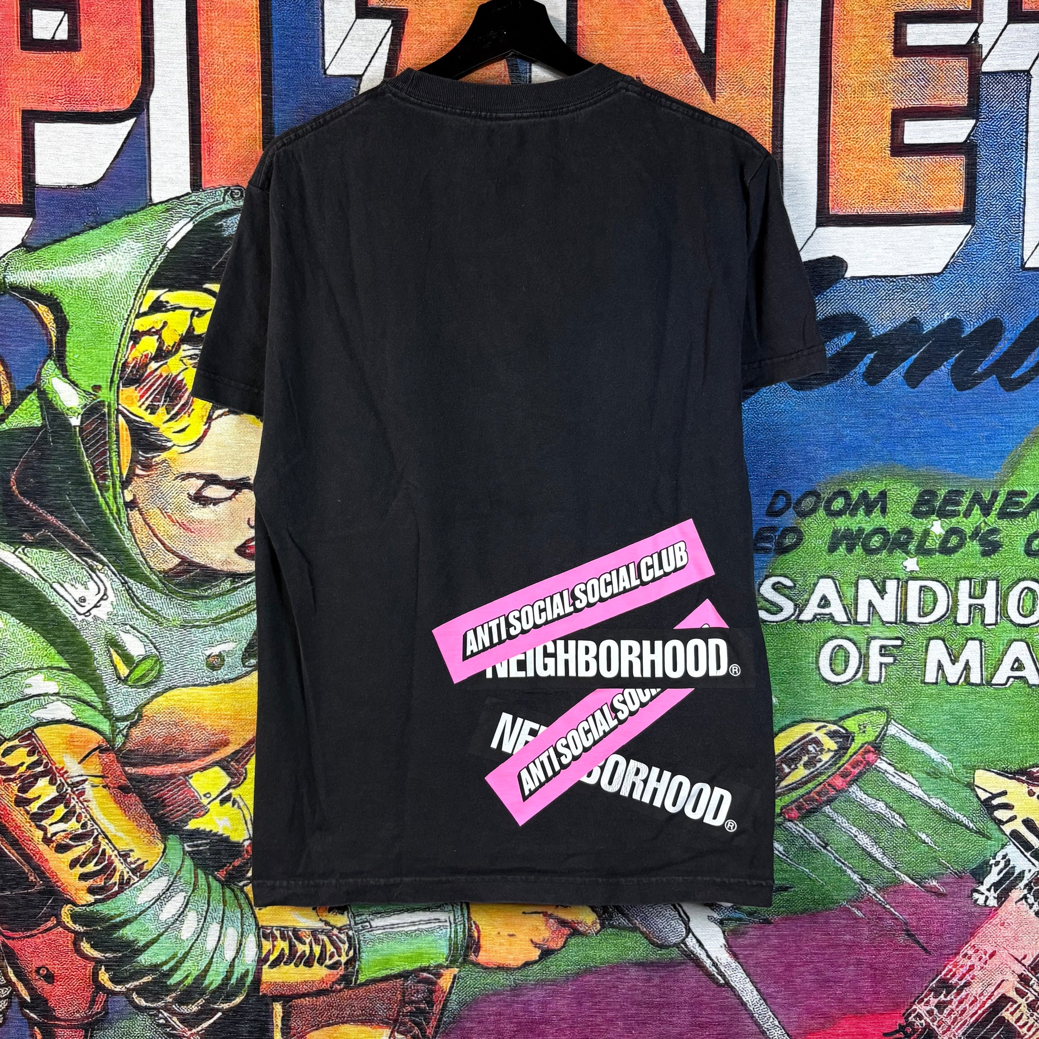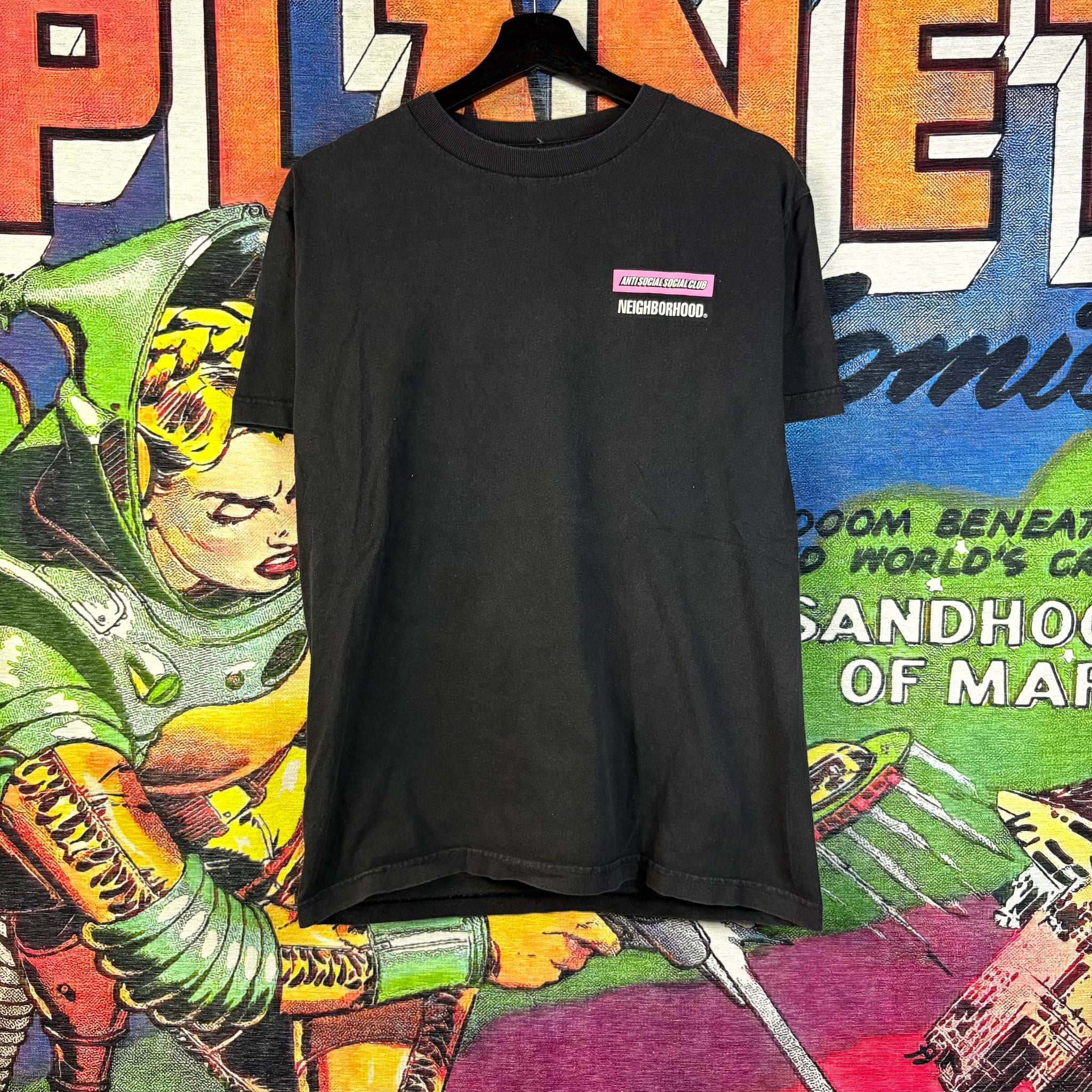 A collaborative piece between Anti Social Social Club and Neighborhood, this tee blends streetwear edge with subtle Japanese-inspired design cues. Made from soft cotton, it offers a comfortable, relaxed fit while showcasing the unique co-branded graphics that make it a standout collectible.