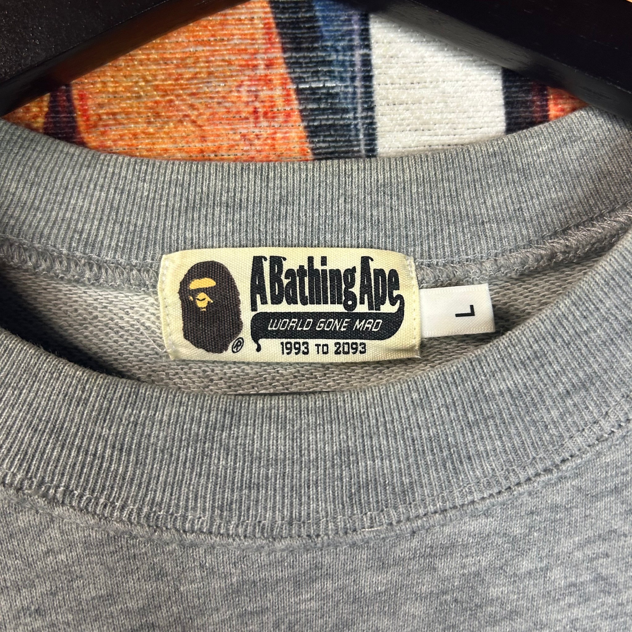 Classic Bape “Busy Works” crewneck featuring the signature Ape Head logo across the chest. Made from soft, heavyweight cotton with a timeless streetwear fit and iconic branding throughout.