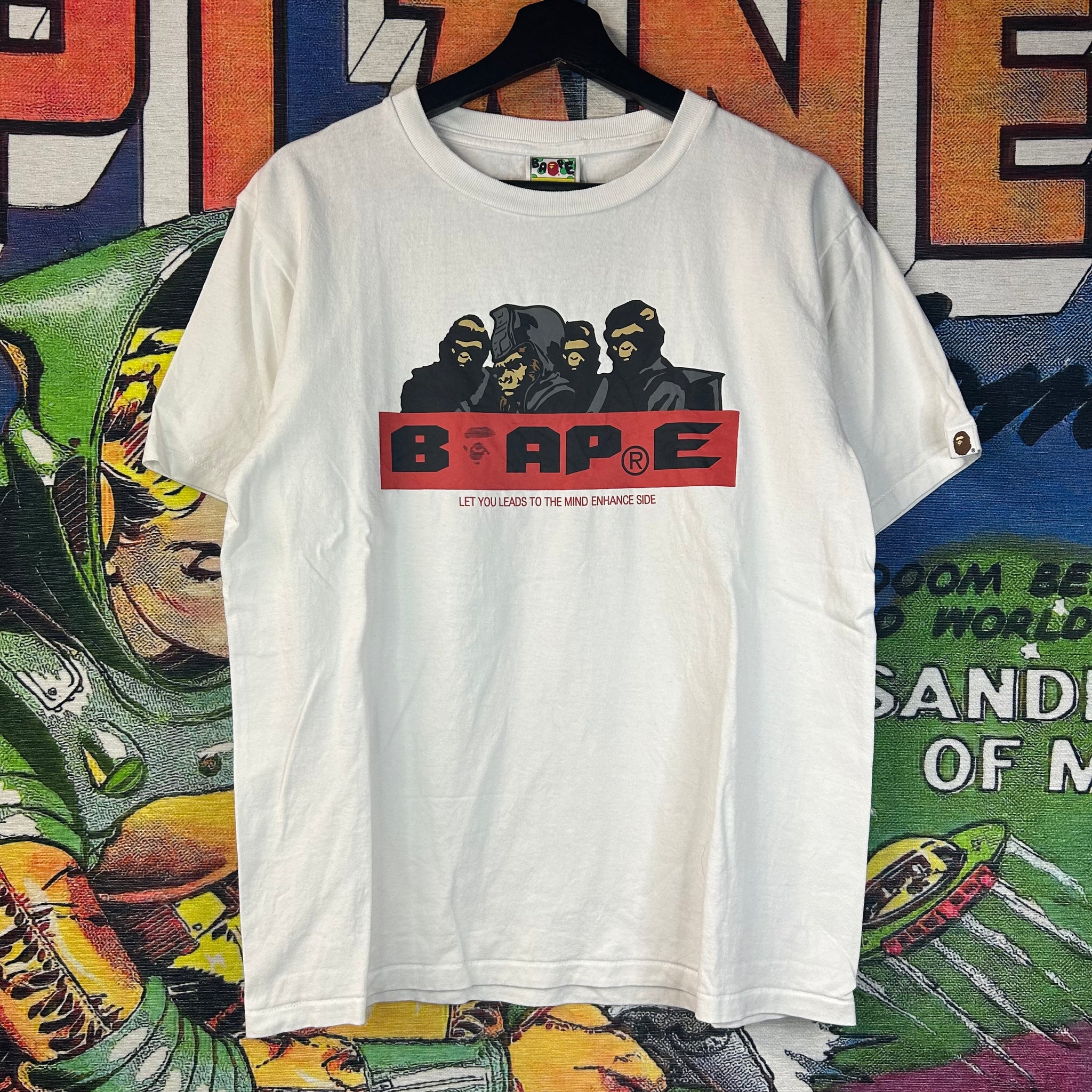 A standout Bape piece, this tee features the brand’s signature bold graphics with the unique “Let You Lead To The Mind Enhance Side” design. Crafted from soft, high-quality cotton, it offers a comfortable fit while maintaining a streetwear edge. Perfect for layering or wearing solo, it’s a collectible for any Bape enthusiast.