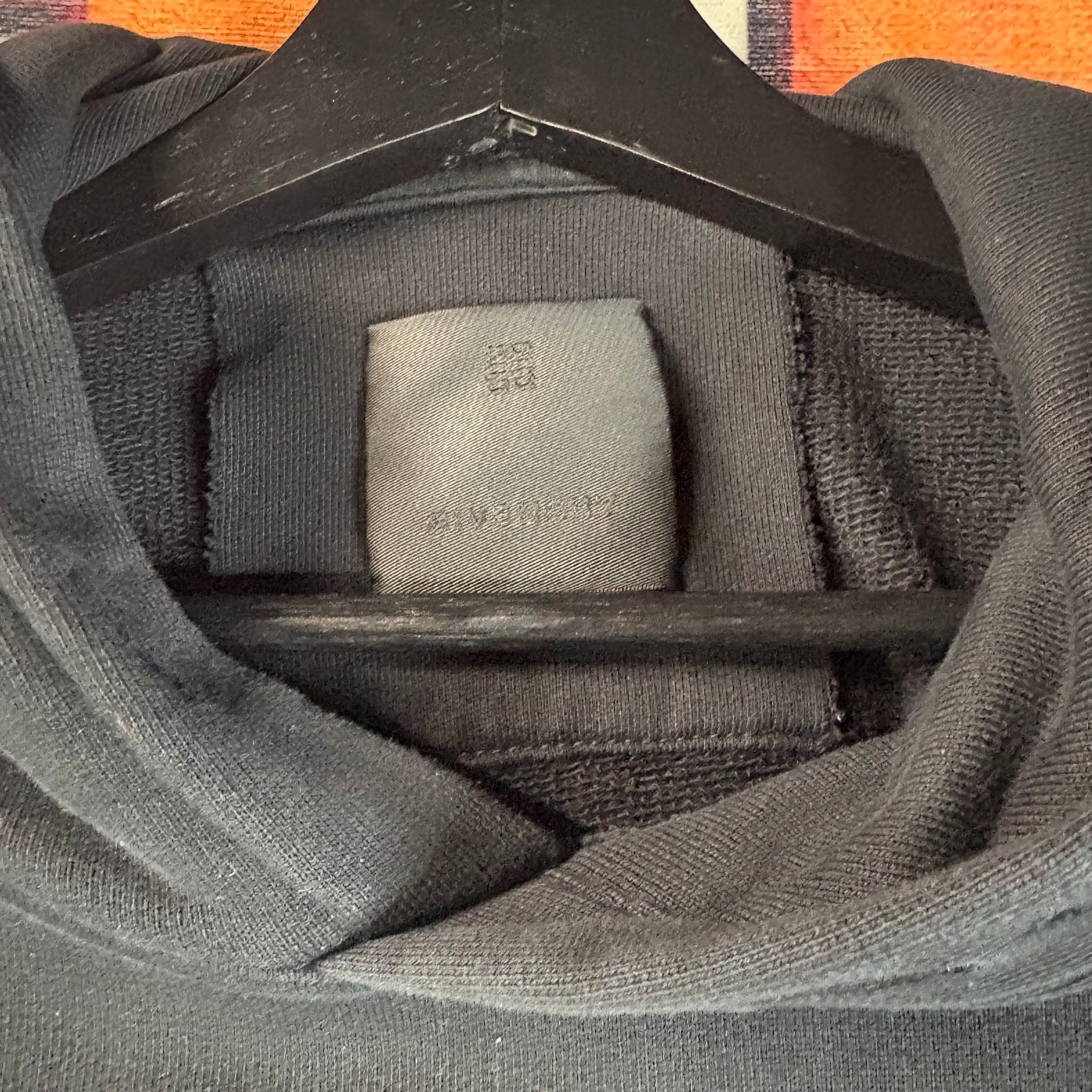 Make a classic, high-fashion statement with this Givenchy black pullover hoodie, featuring the iconic collegiate-style arch logo printed boldly in white across the chest. This essential piece blends luxurious comfort with a clean, timeless streetwear aesthetic, perfect for everyday effortless style. Subtle details, like the 4G emblem branding near the back hem, confirm its authentic designer quality.