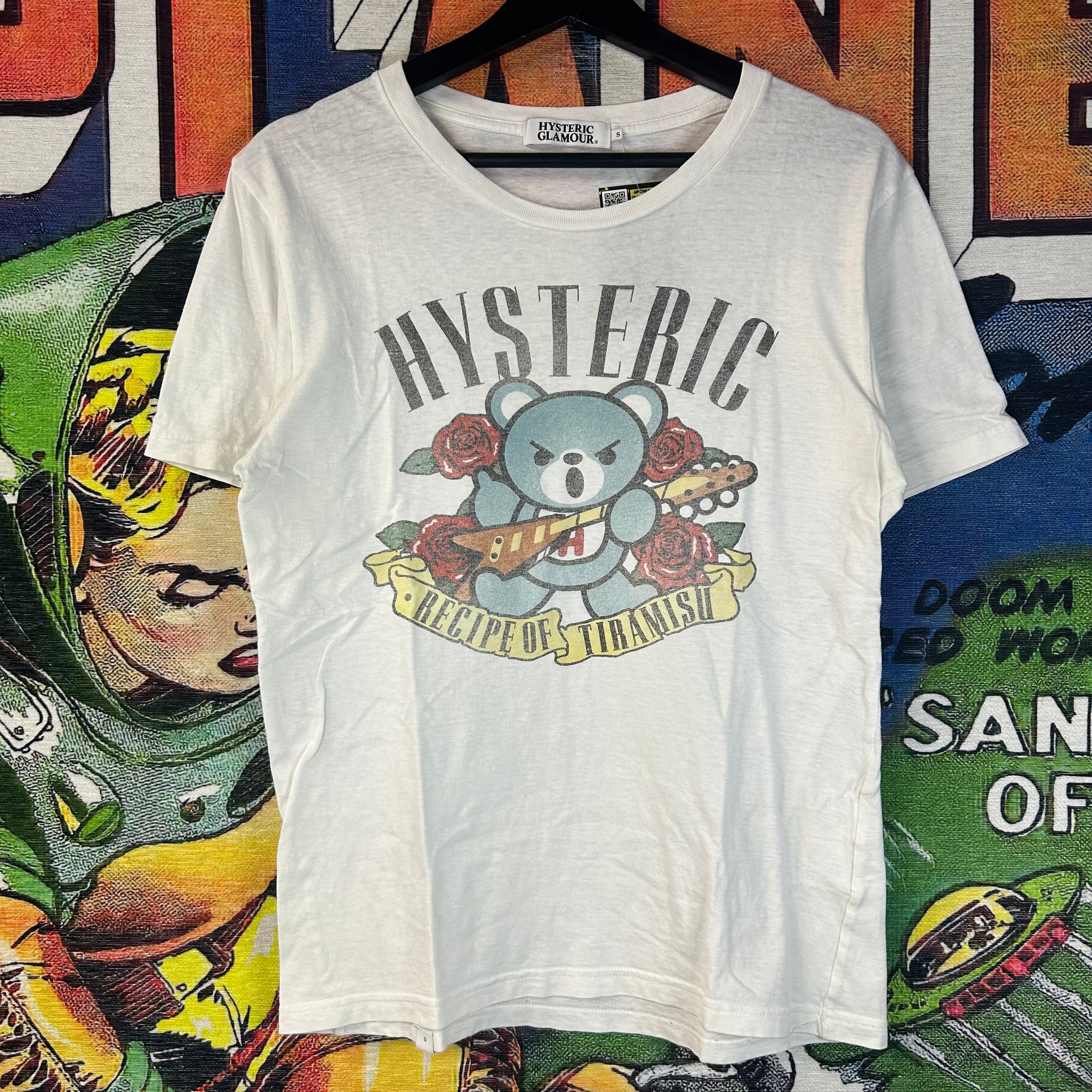 Playful and unmistakably punk, this Hysteric Glamour “Recipe for Tiramisu” Tee highlights the brand’s iconic mix of pop art, irony, and Japanese streetwear attitude. Featuring a bold graphic print with a quirky culinary twist, this tee is crafted from soft cotton and offers a classic fit that’s easy to style on its own or layered. A standout piece for fans of Hysteric Glamour and statement graphic tees alike.