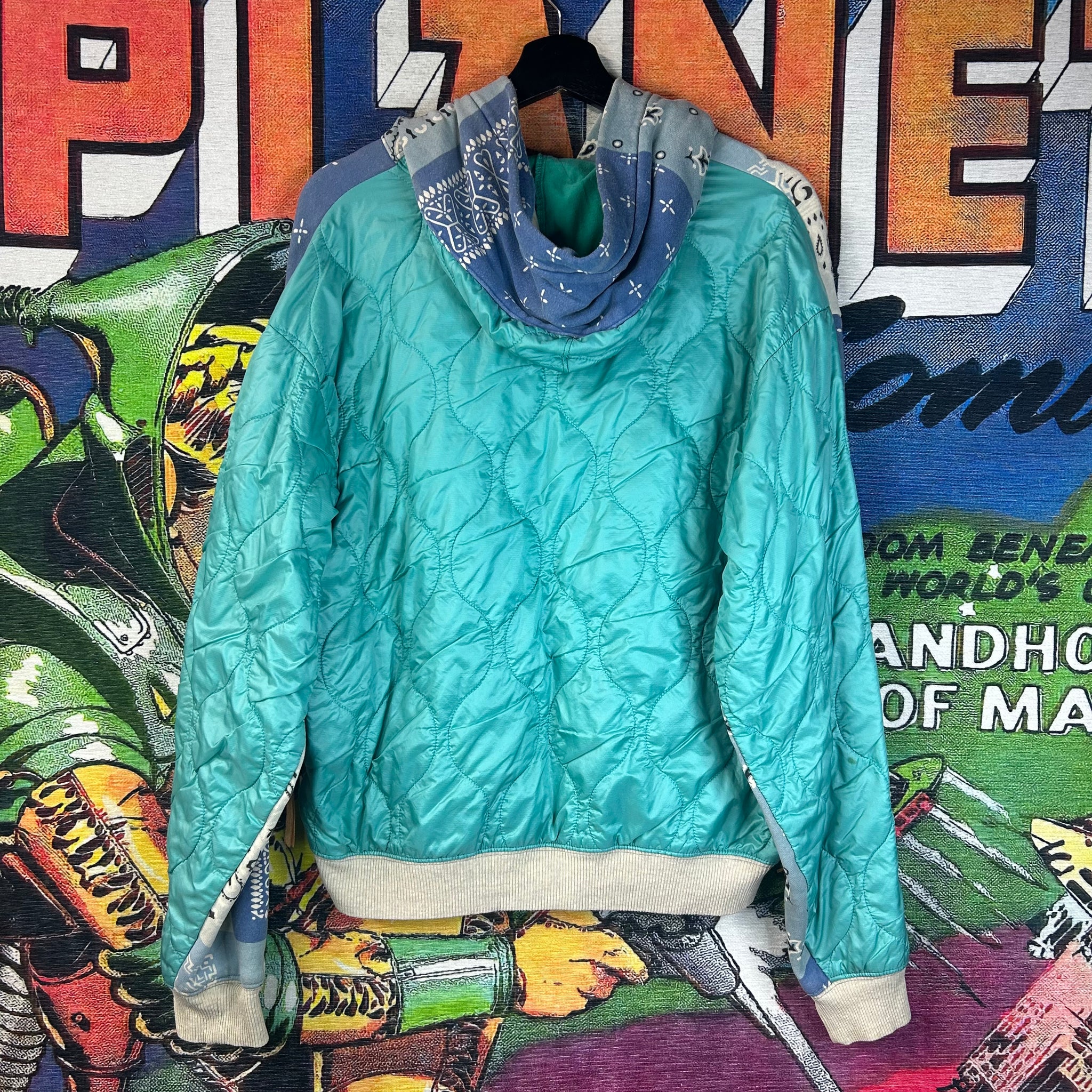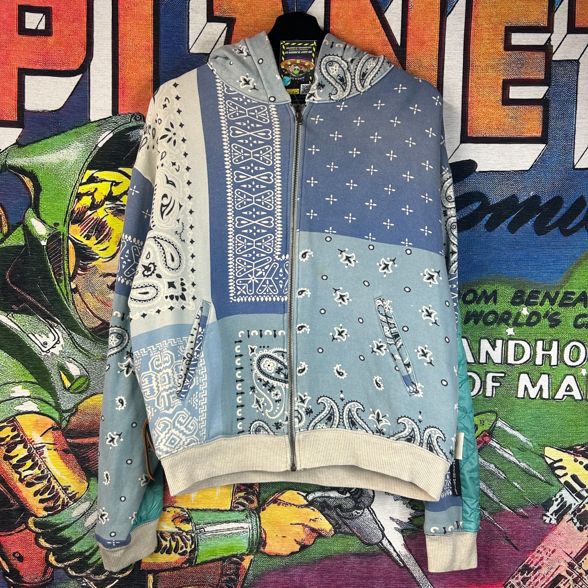 A standout piece from Kapital, this Bandana Zip Up Hoodie blends Japanese craftsmanship with bold, heritage-inspired design. Featuring Kapital’s signature bandana motif throughout, it offers a unique, eye-catching look while maintaining everyday wearability. Crafted from high-quality materials with a comfortable, relaxed fit, this hoodie is perfect for layering or making a statement on its own.