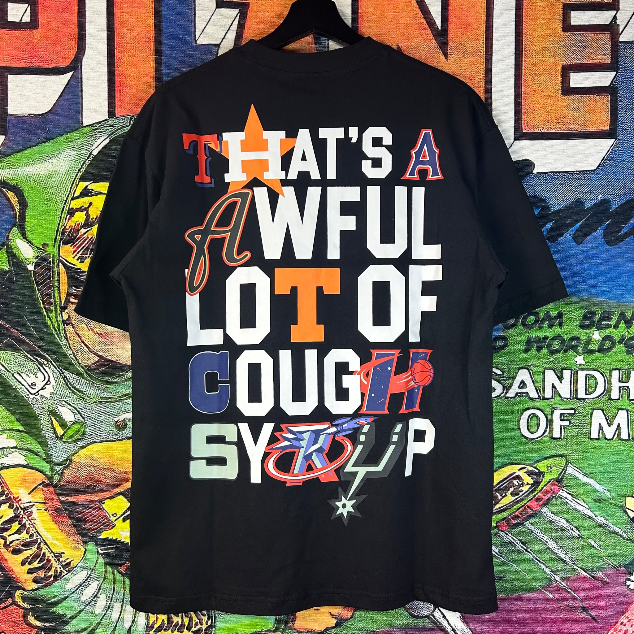 Graphic tee from A Awful Lot of Cough Syrup featuring bold Texas sports–inspired logos. Crafted from comfortable cotton with a classic streetwear fit, this tee delivers a clean yet statement look that pairs easily with denim or sweats.