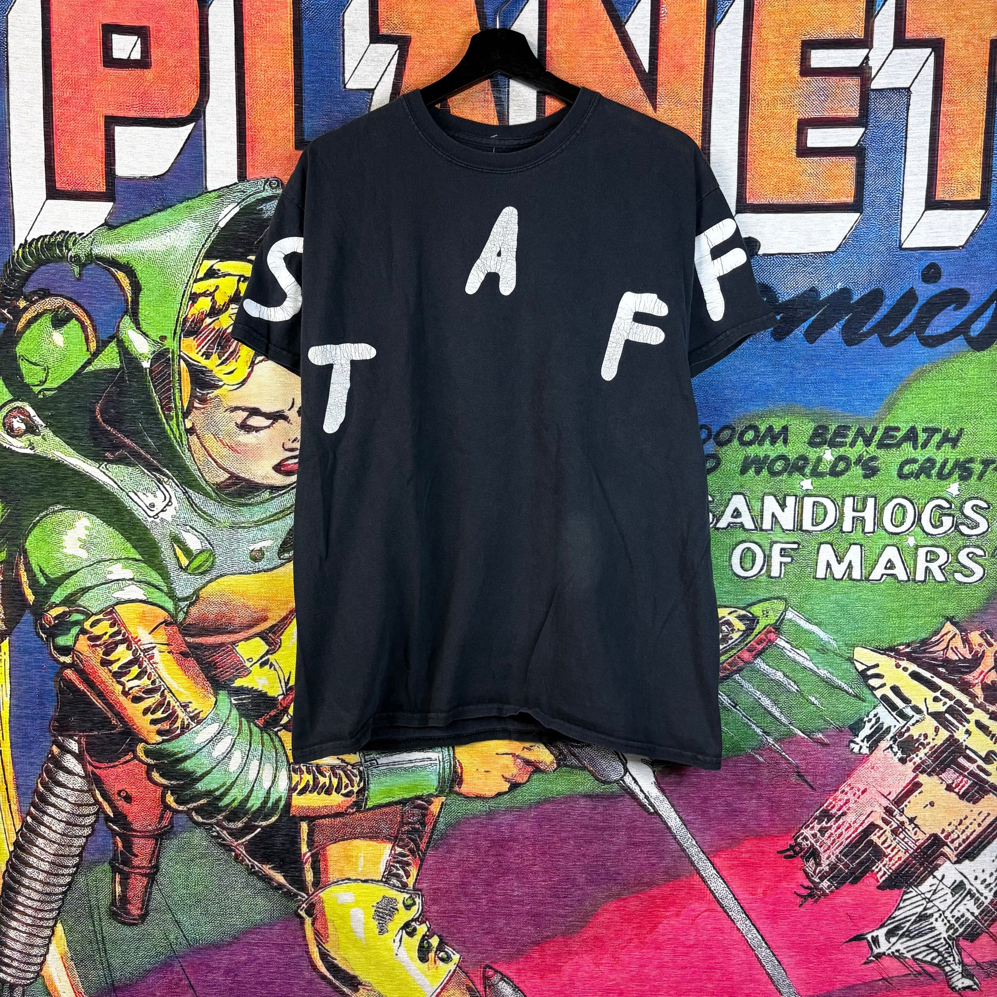 A piece straight from the 2019 Astroworld Fest, this staff tee carries that behind-the-scenes aura—clean, bold, and built with that signature tour-grade feel. The cotton has a comfortable, lived-in weight, and the graphic hits give it that unmistakable Astroworld look that collectors chase. Perfect for anyone who loves rare Travis merch with real event provenance.