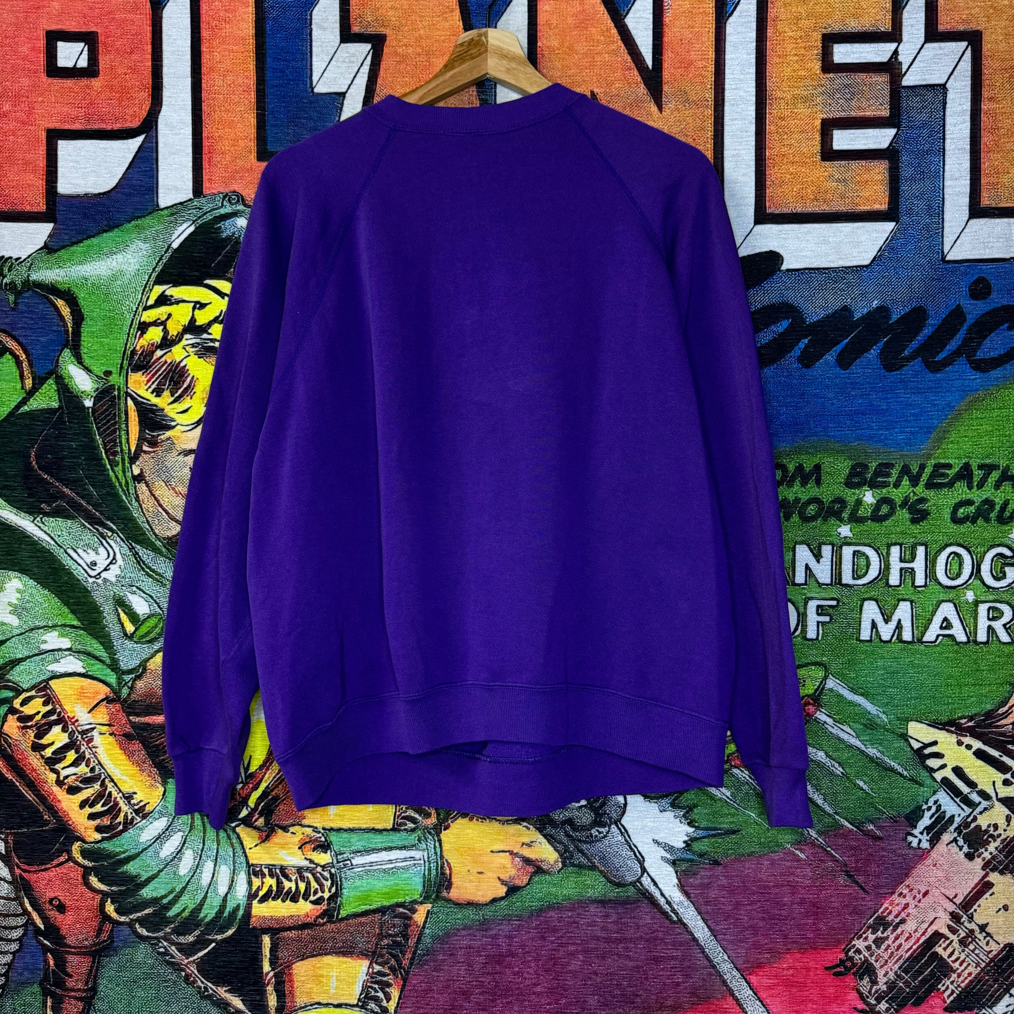 Bring some vintage vibes to your wardrobe with this 80s Minnesota Vikings sweatshirt! The cracked print Vikings logo adds a unique touch, while the beautiful shade of purple will make you stand out in any crowd. Perfect for passionate vintage clothing enthusiasts.