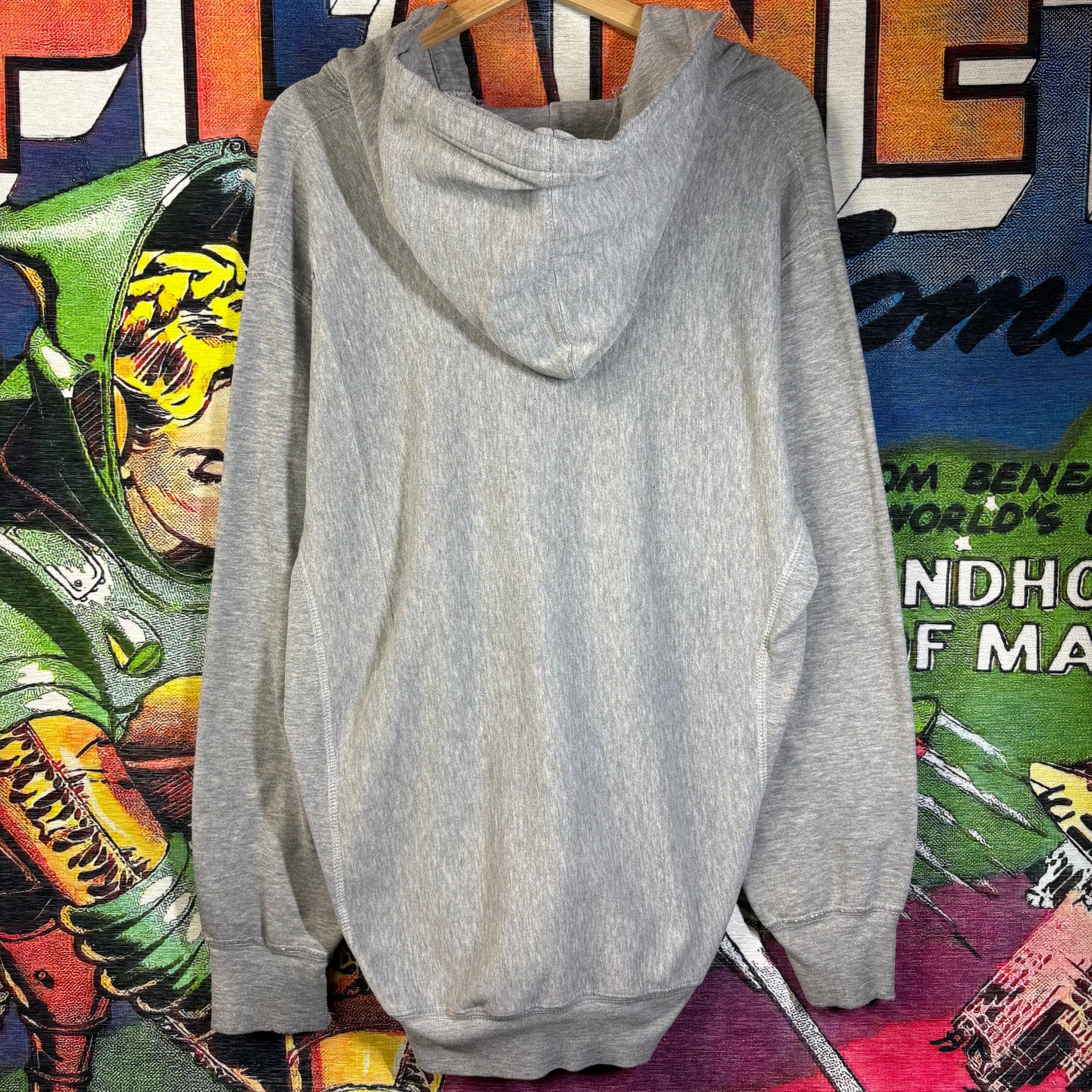 Stay warm and stylish in this vintage University of Nebraska hoodie in heather grey, featuring bold red collegiate lettering across the chest. Made by Steve & Barry's, this nine-ounce technical fleece is an oversized, heavyweight pullover with a front pouch pocket, perfect for channeling retro campus style and team spirit.
