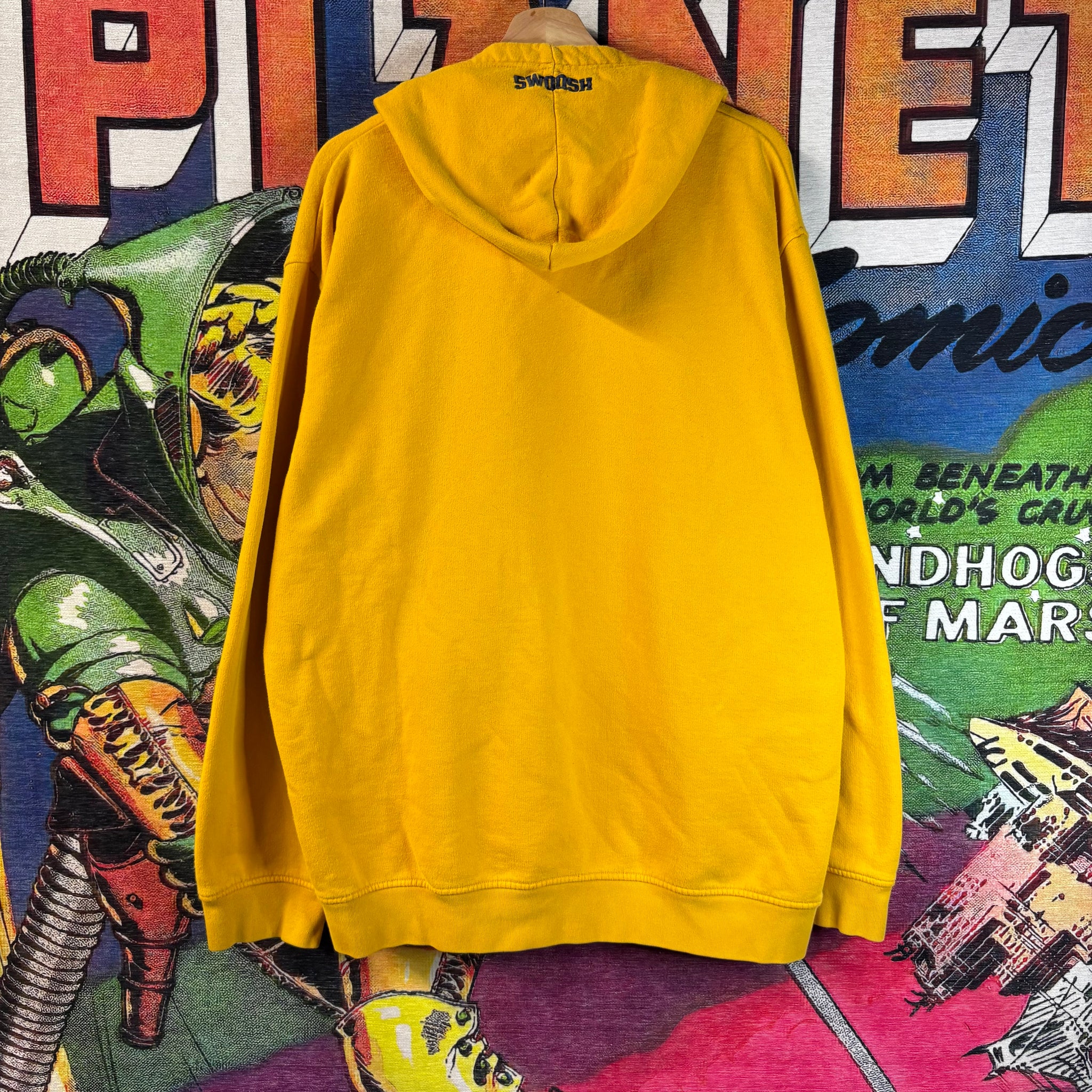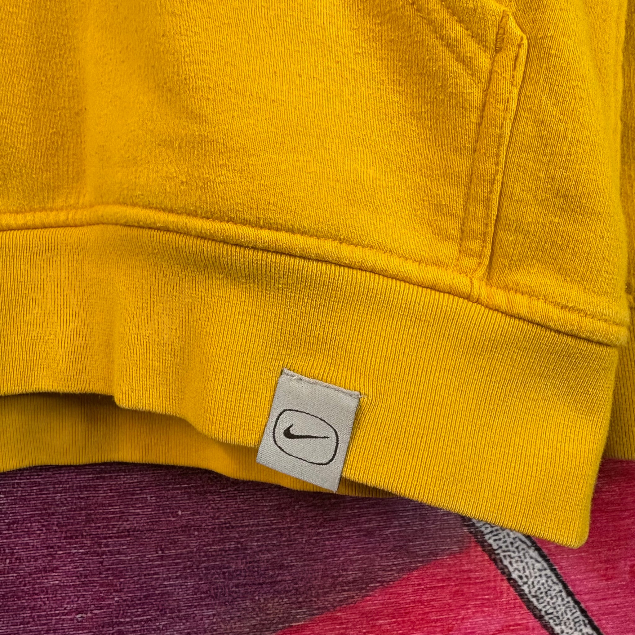 A vintage Y2K Nike hoodie in bright yellow featuring the classic spellout logo across the chest. Made for a relaxed, oversized fit, this hoodie combines sporty comfort with nostalgic early-2000s style. Ribbed cuffs and hem complete the look, making it perfect for layering or wearing as a statement piece.