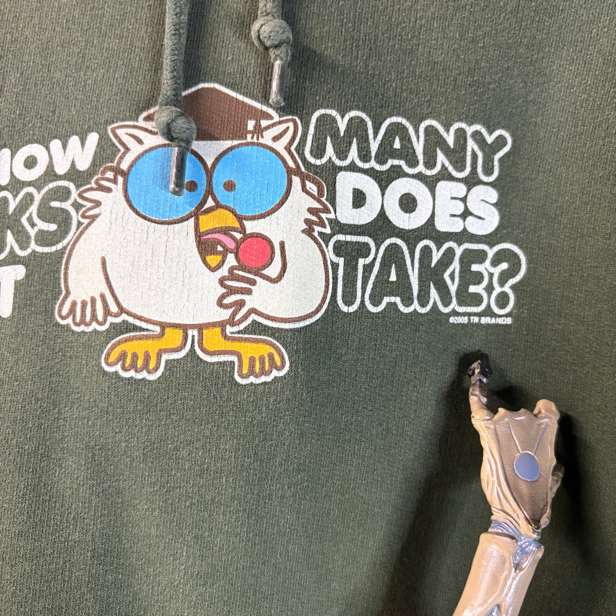 This Y2K hoodie features a playful owl graphic with the phrase “How Many Licks Does It Take?” on a soft, faded green cotton-blend fabric. Designed with a relaxed fit, ribbed cuffs, and hem, it’s perfect for casual wear or layering while adding a nostalgic early 2000s vibe to your wardrobe.