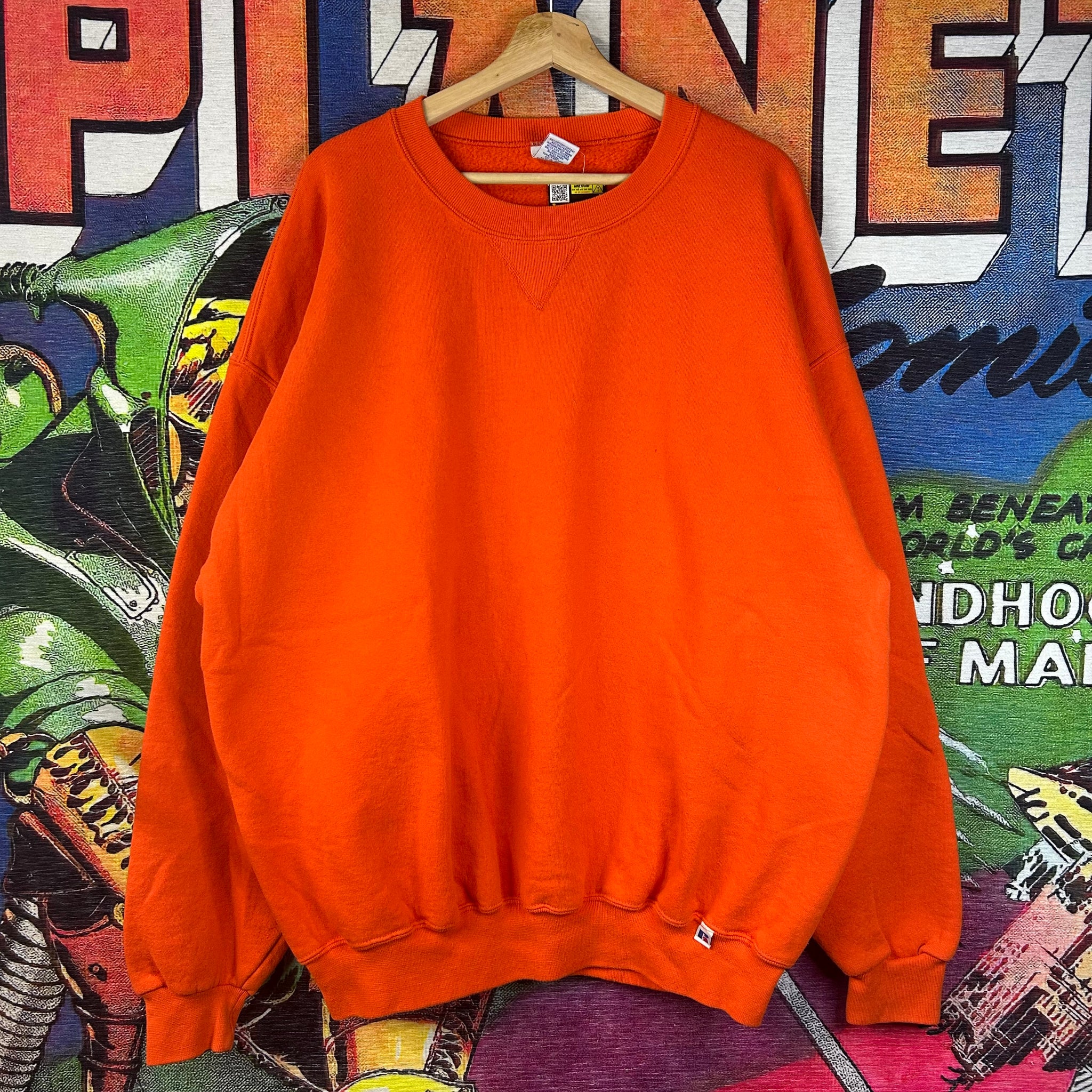 A classic early-2000s Russell Athletic sweatshirt in a bold orange colorway. Featuring a comfortable, relaxed fit and durable construction, this piece embodies timeless athleticwear with vintage Y2K appeal. Easy to style for everyday wear, layering, or a throwback sports look.
