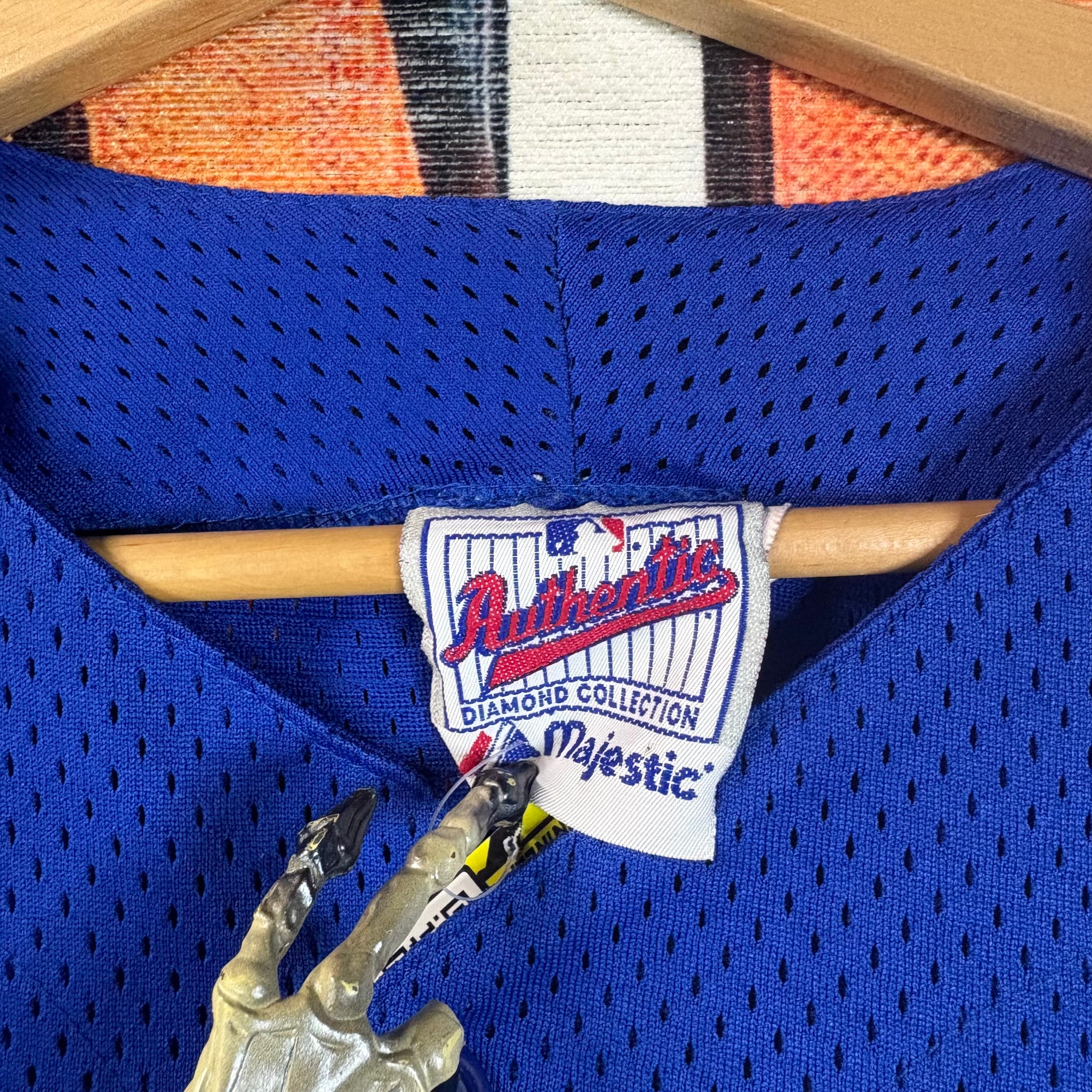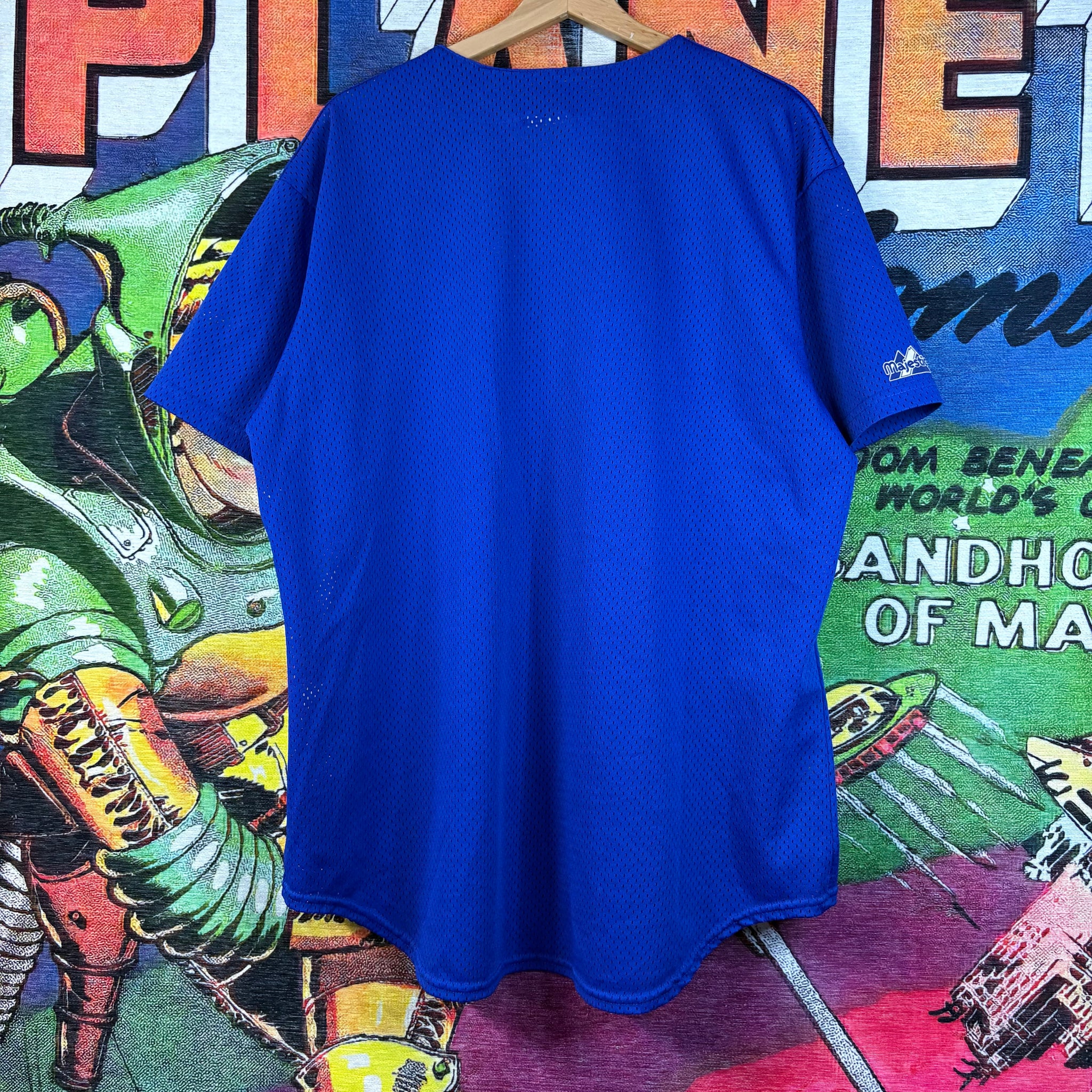 Check out this vibrant, royal blue Texas Rangers baseball jersey from the Majestic Diamond Collection! The iconic "RANGERS" script across the chest is beautifully stitched in red, white, and blue, making it a classic piece of gear for any fan. It's the perfect jersey to rock at the ballpark and show off your team pride with a retro-inspired look.