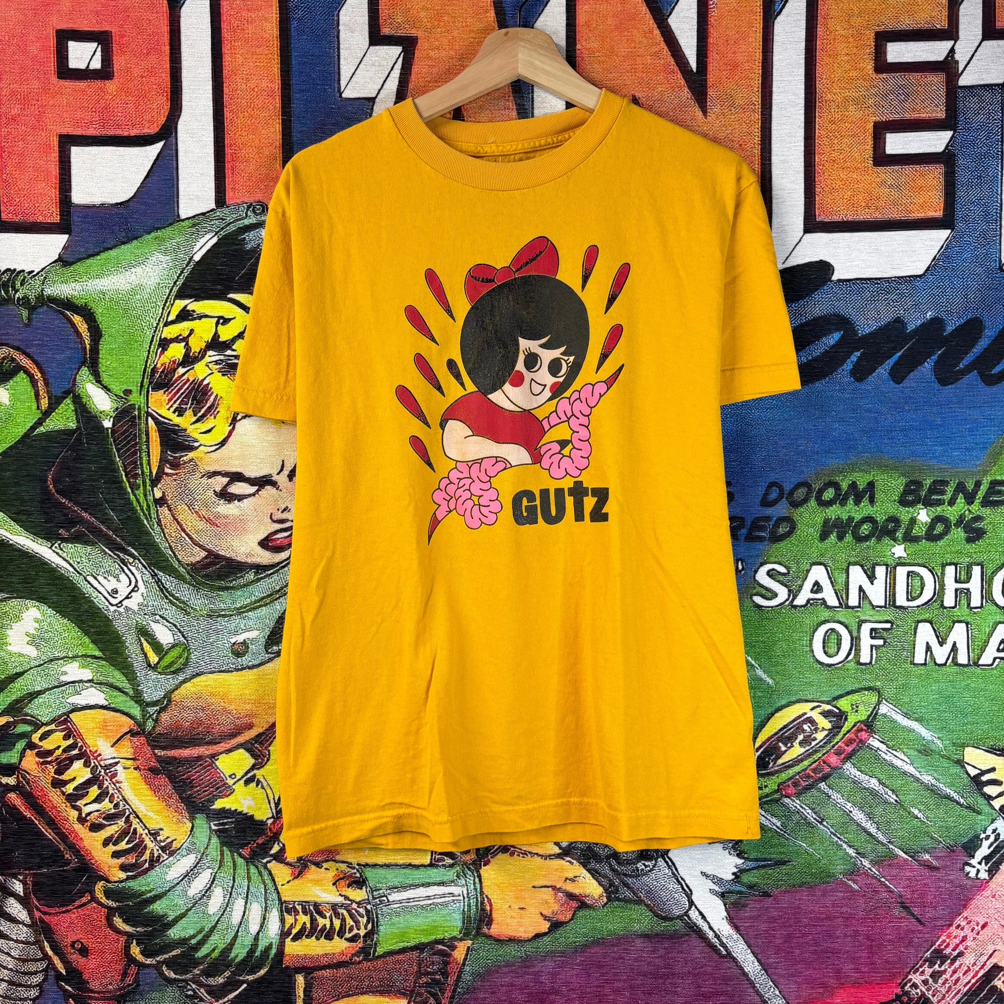 A playful medium tee featuring a parody graphic inspired by the classic UTZ potato chip logo. Perfect for fans of quirky, nostalgic designs, this shirt adds a humorous and retro touch to any casual outfit.