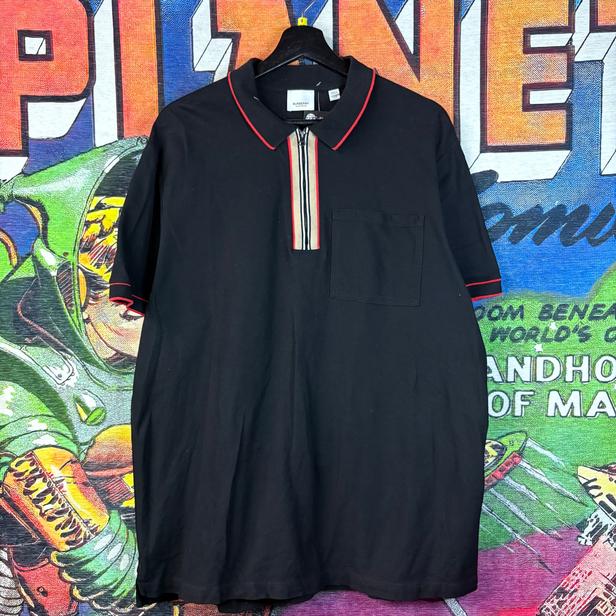 Crafted from Burberry’s signature breathable cotton piqué, this half-zip polo brings a modern twist to a timeless silhouette. The contrast tipping along the collar and sleeves adds a sharp, refined edge, while the half-zip front gives it that easy, contemporary feel—perfect to dress up or keep casual. A clean, structured fit rounds it out, making it an ideal everyday staple with a touch of luxury.