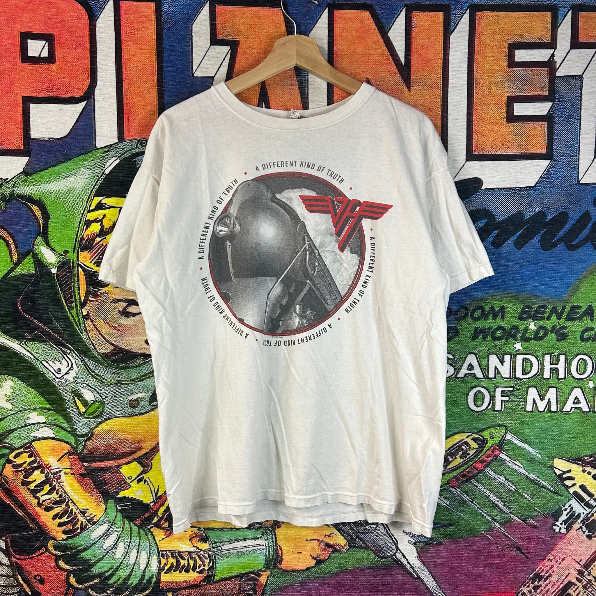 Van Halen “A Different Kind of Truth” band tee featuring bold tour‑inspired graphics celebrating the iconic rock group. Made from soft, comfortable fabric with a relaxed fit, this shirt blends music culture style with everyday wearability — perfect for fans and casual outfits.