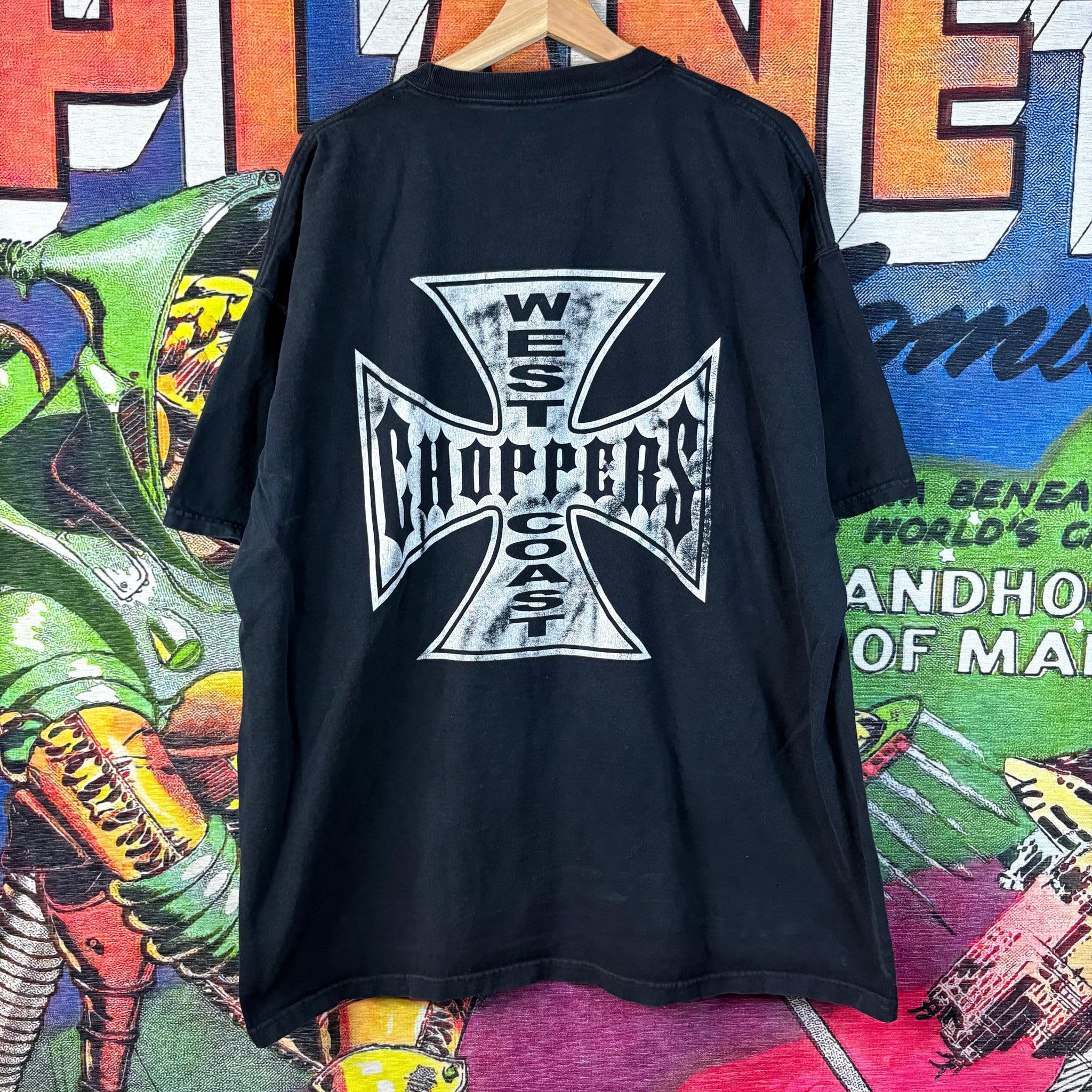 Ride the legacy of biker culture with this West Coast Choppers Tee, featuring bold graphics inspired by the iconic West Coast motorcycle brand. The oversized 2XL fit offers a relaxed, street-ready silhouette, making it perfect for collectors, enthusiasts, or anyone who appreciates vintage early-2000s graphic tees with attitude.