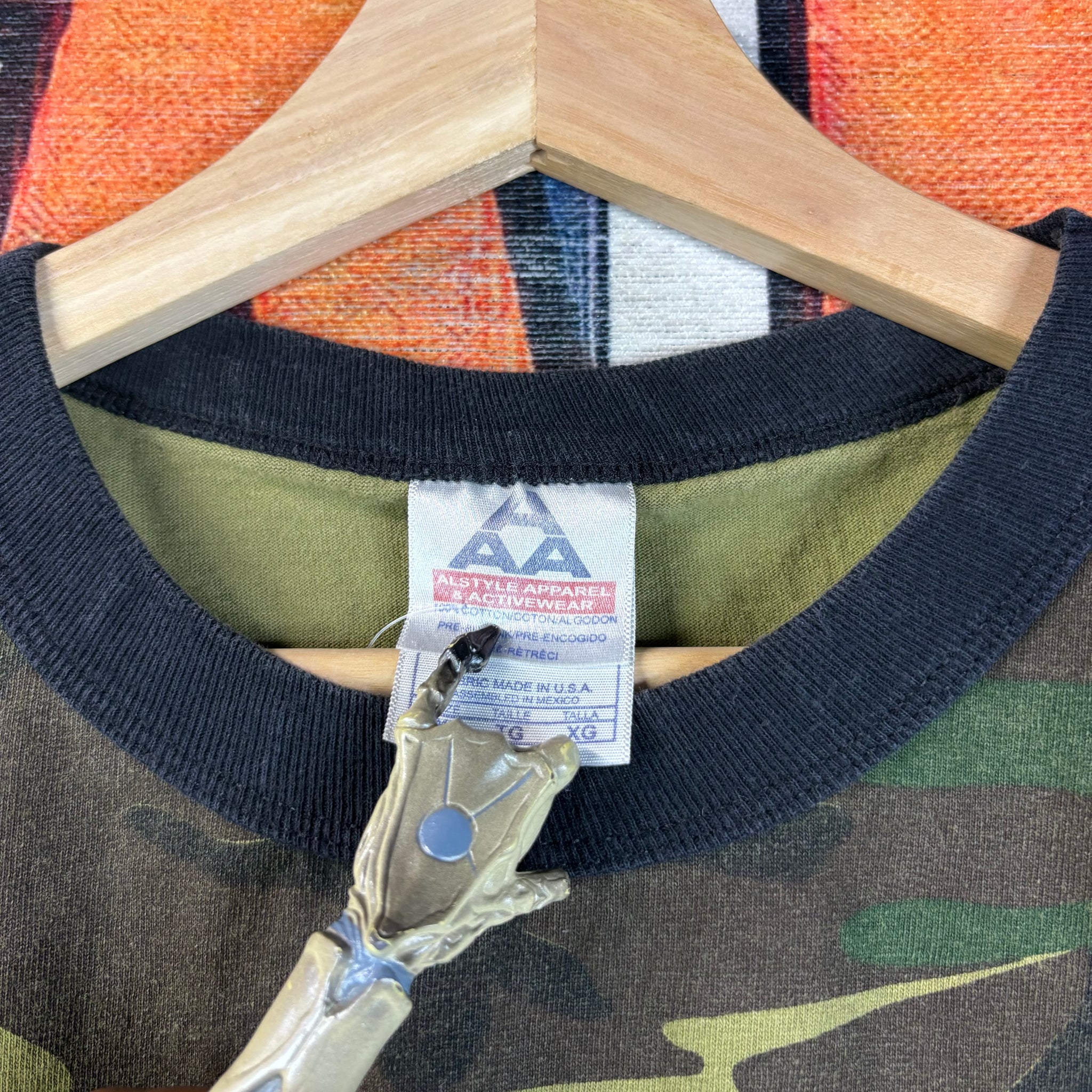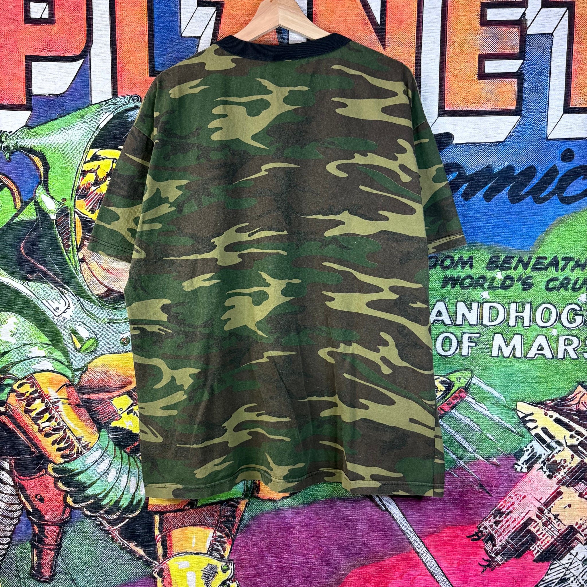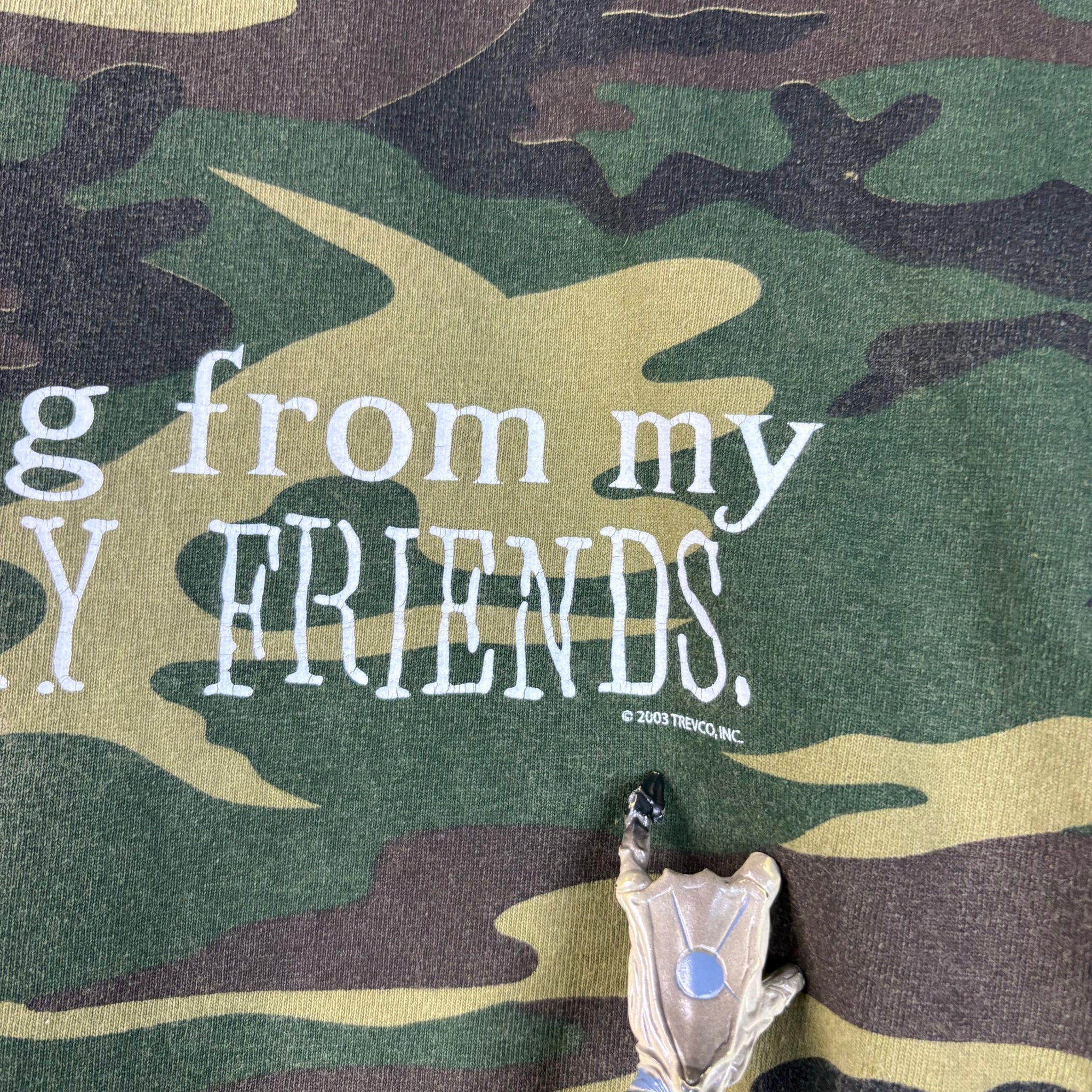 A playful and nostalgic throwback to the early 2000s, this tee captures that quirky, offbeat Y2K humor with the statement “I’m Hiding From My Imaginary Friends.” The soft, worn-in cotton gives it a broken-in, comfortable feel, while the XL size drapes perfectly for a relaxed, casual fit. A perfect conversation starter for collectors of early-2000s graphic tees or anyone who loves whimsical vintage style.