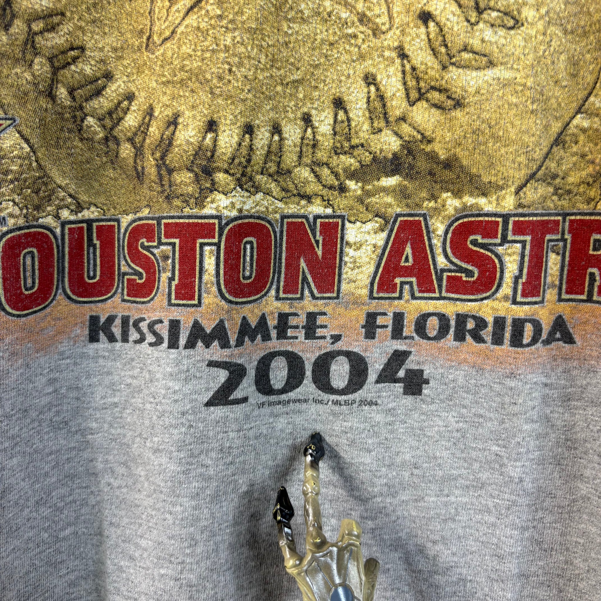 Classic 2004 Houston Astros Spring Training tee from the Grapefruit League, made by Lee Sport. Features bold front graphics with the Astros logo and “Spring Training” text, capturing the energy of early-season baseball in Florida. Crafted from soft, mid-weight cotton with that broken-in vintage feel — perfect for fans of early 2000s MLB style and Astros history.
