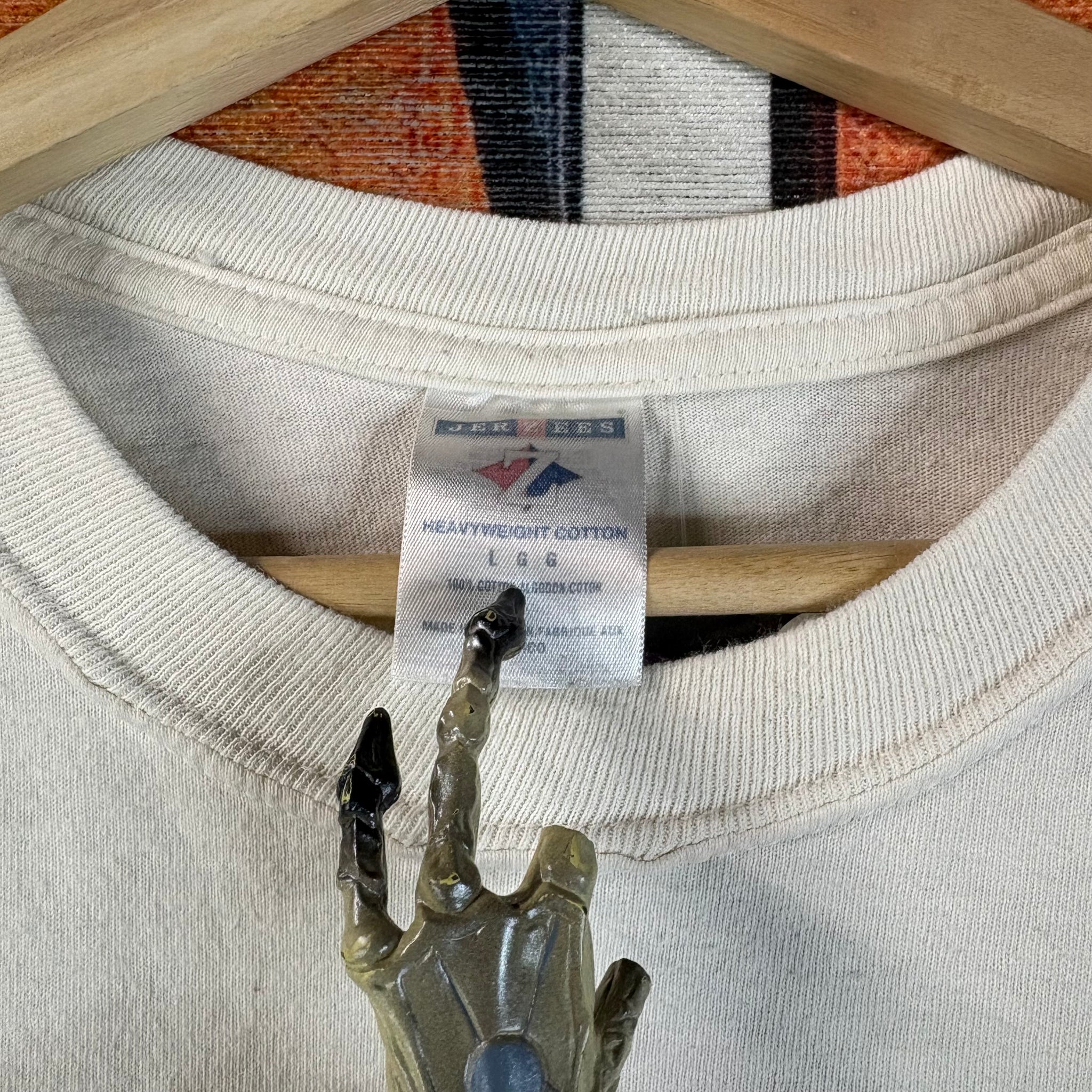 Celebrate soccer history with this vintage Argentina graphic T-shirt, possibly from the 1990s or 2014. Featuring bold team-inspired graphics, this tee is perfect for fans of international football or collectors of unique vintage sports apparel. The shirt shows character from its age, and any flaws are clearly shown in the photos.