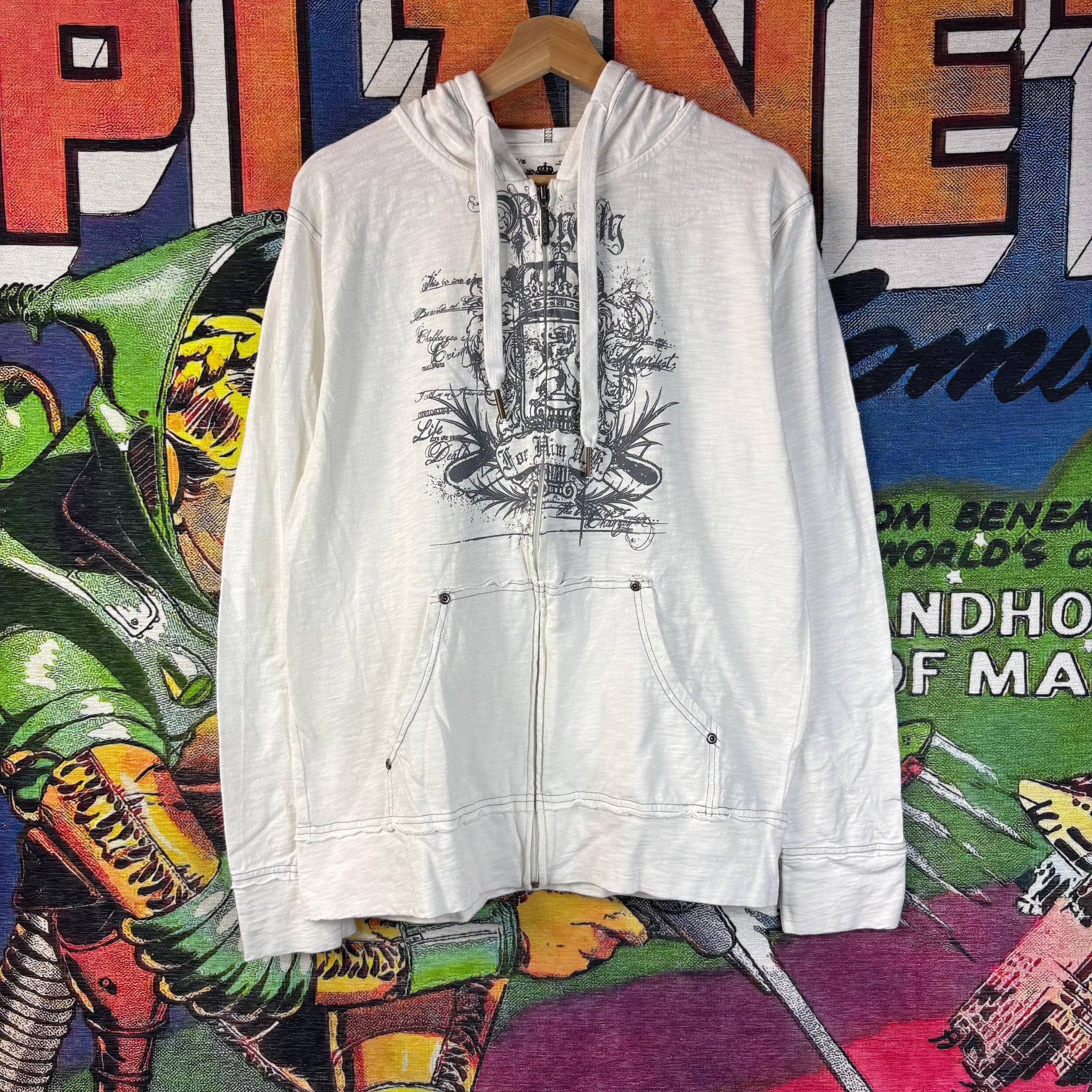 Y2K-era For Him U.K. zip-up hoodie featuring bold early-2000s graphic branding for a standout streetwear look. Classic full-zip design with a relaxed Large fit, perfect for layering or wearing solo. A vintage piece that embodies the edgy, logo-driven aesthetic of Y2K urban fashion.