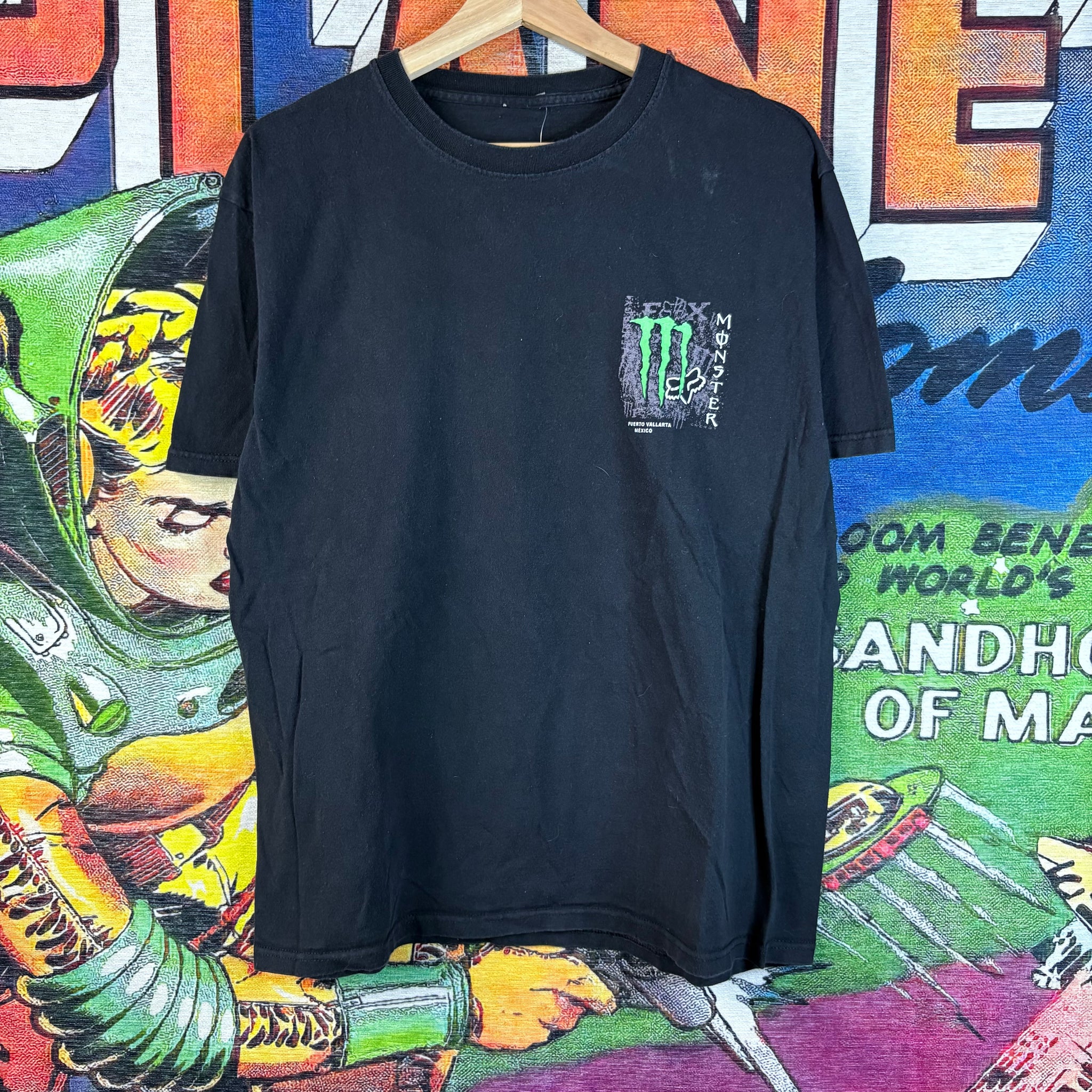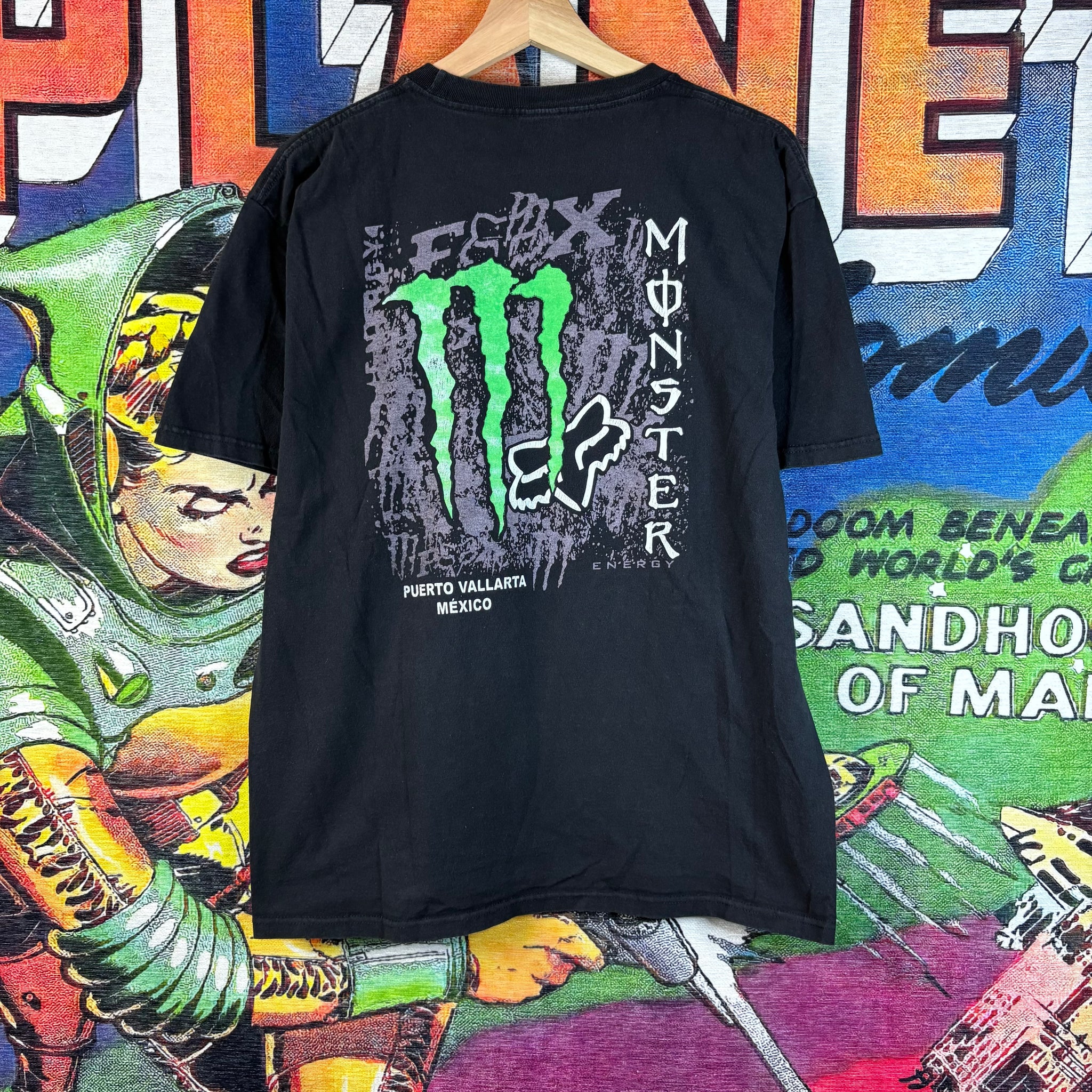 Fox Racing and Monster Energy t-shirt featuring bold co-branded graphics from Puerto Vallarta, Mexico. A rare collector’s piece that combines motocross and energy drink culture with vibrant, eye-catching design—perfect for fans of motorsports and vintage streetwear.
