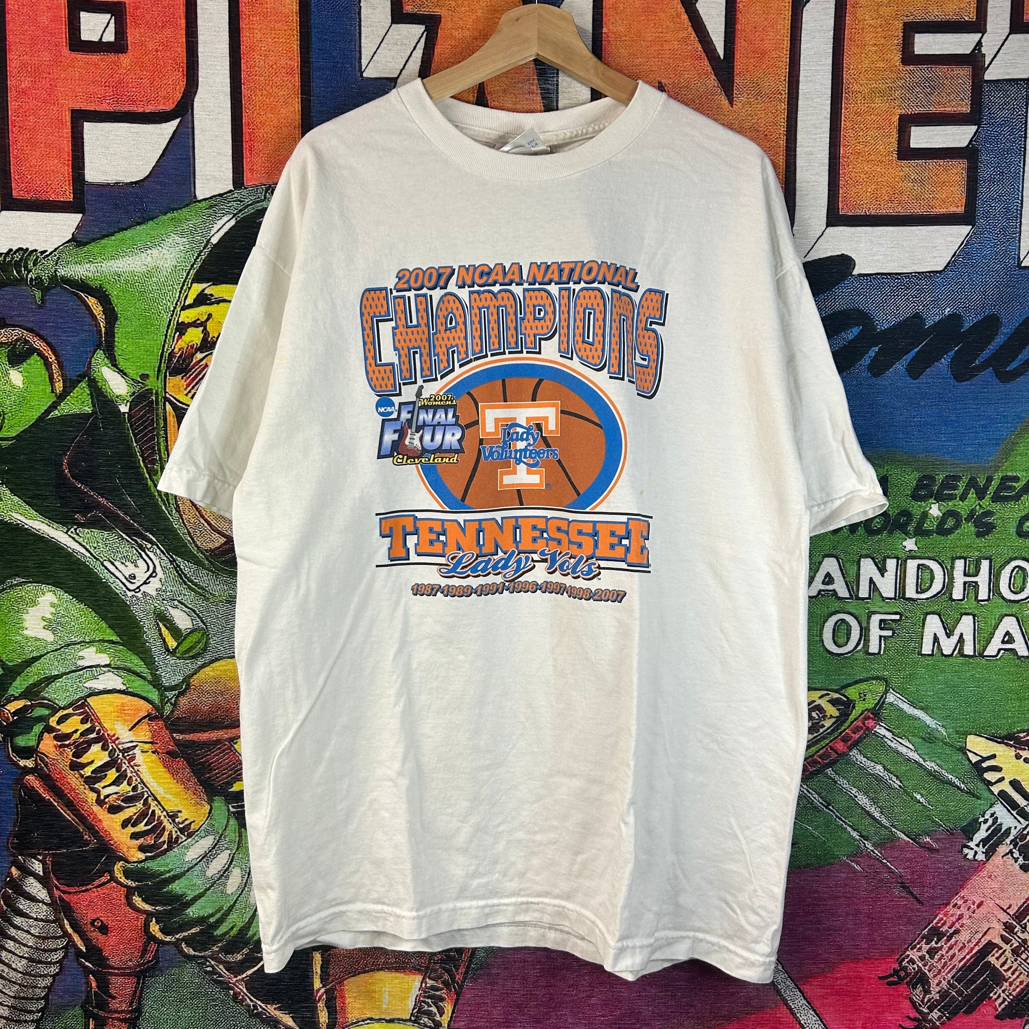 Y2K NCAA Final Four Tennessee Basketball tee celebrating the University of Tennessee’s appearance in the NCAA Final Four, featuring classic college basketball-inspired graphics. Made from soft, comfortable fabric with a relaxed fit, this shirt blends vintage sportswear appeal with everyday wearability — perfect for fans of basketball or retro athletic style.