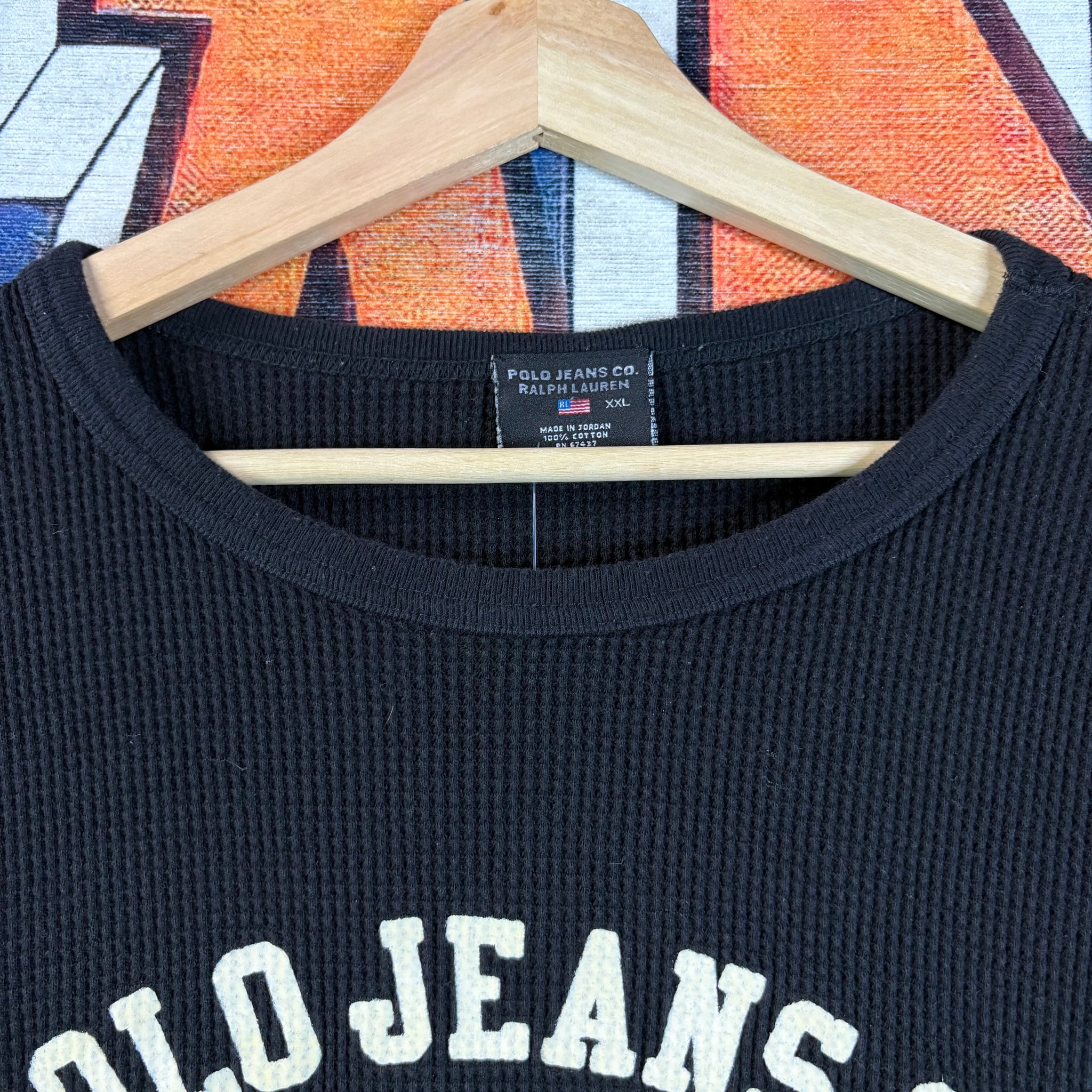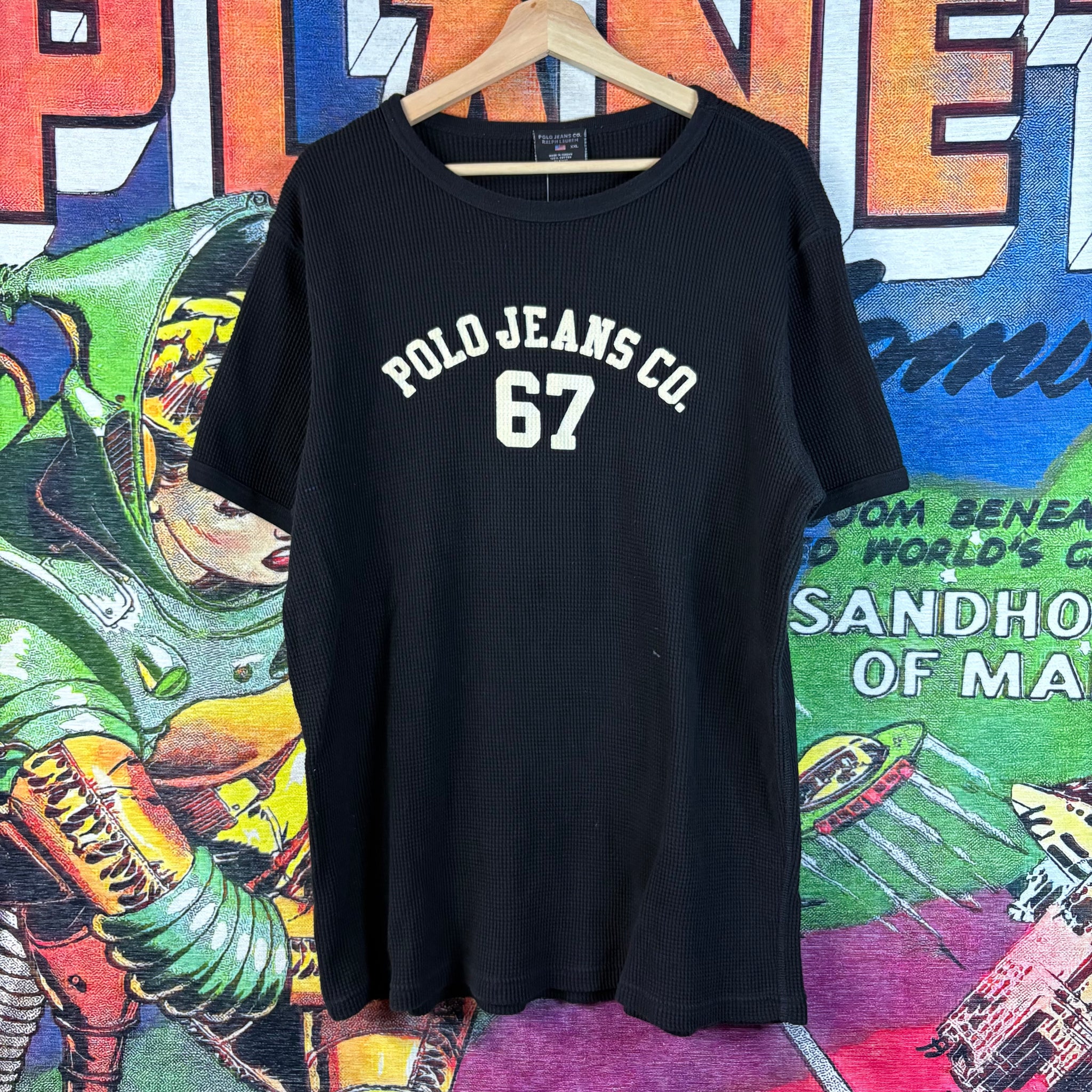 Y2K Polo Jeans Co. t-shirt in size XL, capturing that early-2000s Americana style Ralph Lauren was known for. Features a classic logo print across the chest on soft, midweight cotton with a naturally broken-in feel. The relaxed fit and timeless design make it a versatile vintage staple that pairs effortlessly with denim or cargos.