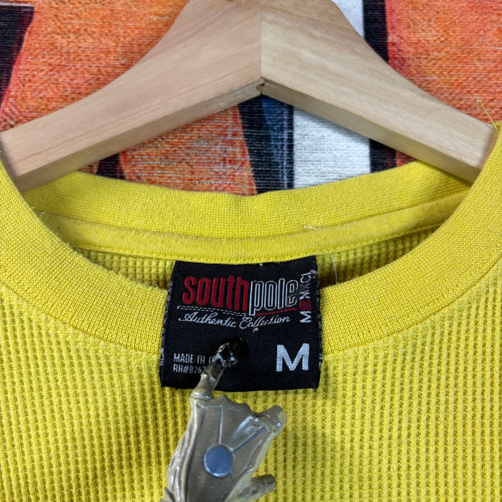 Y2K Southpole Men's Yellow Waffle Pullover Crew Neck Long Sleeve Thermal Size Medium