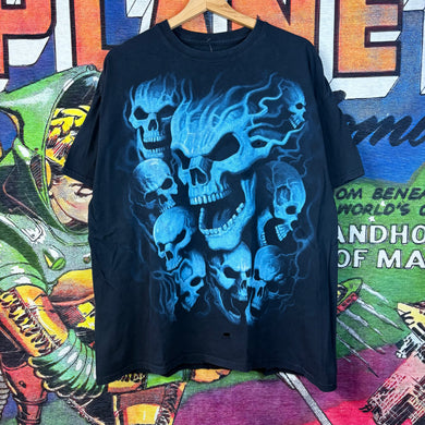 Liquid Blue Blue Flamming Skull Tee Size XL