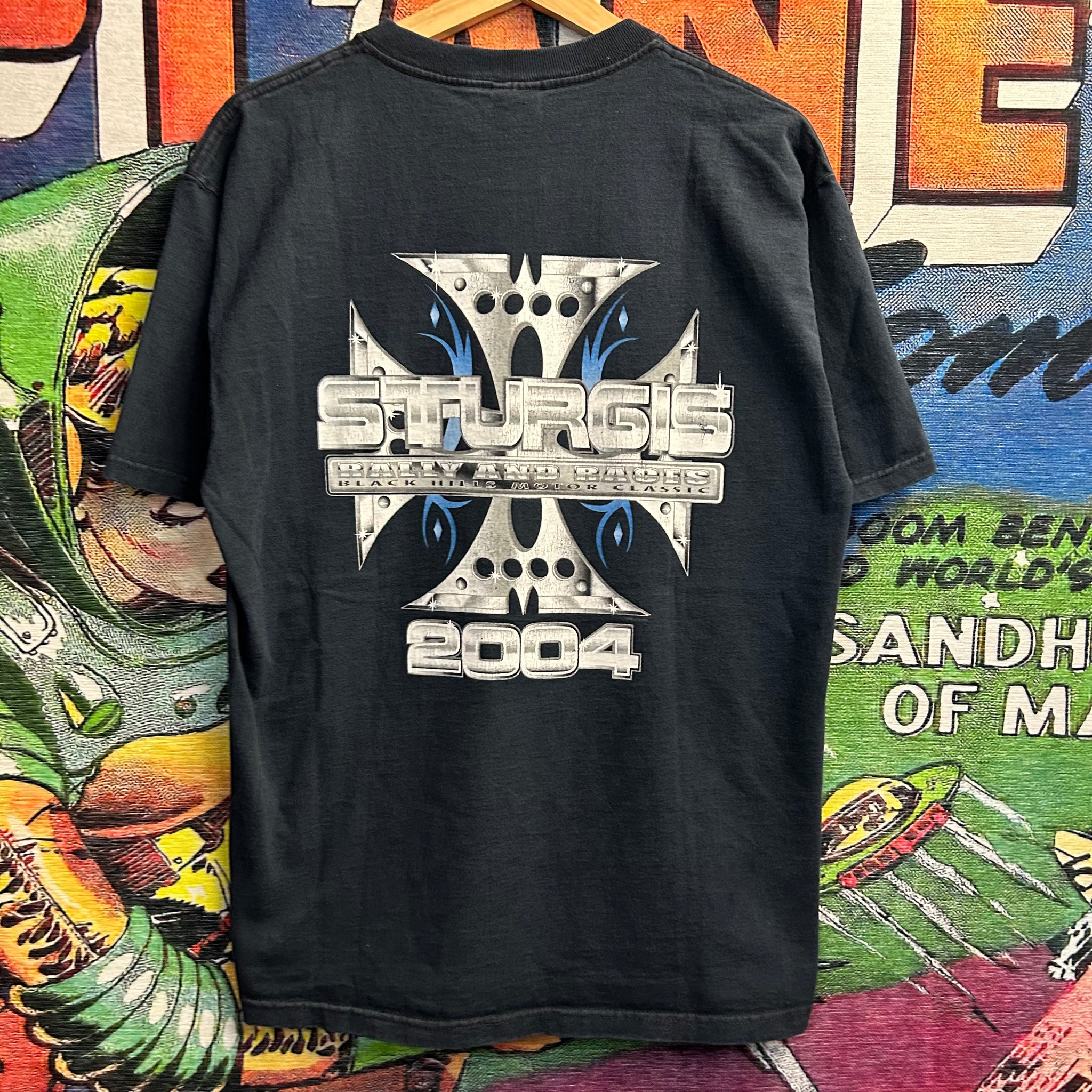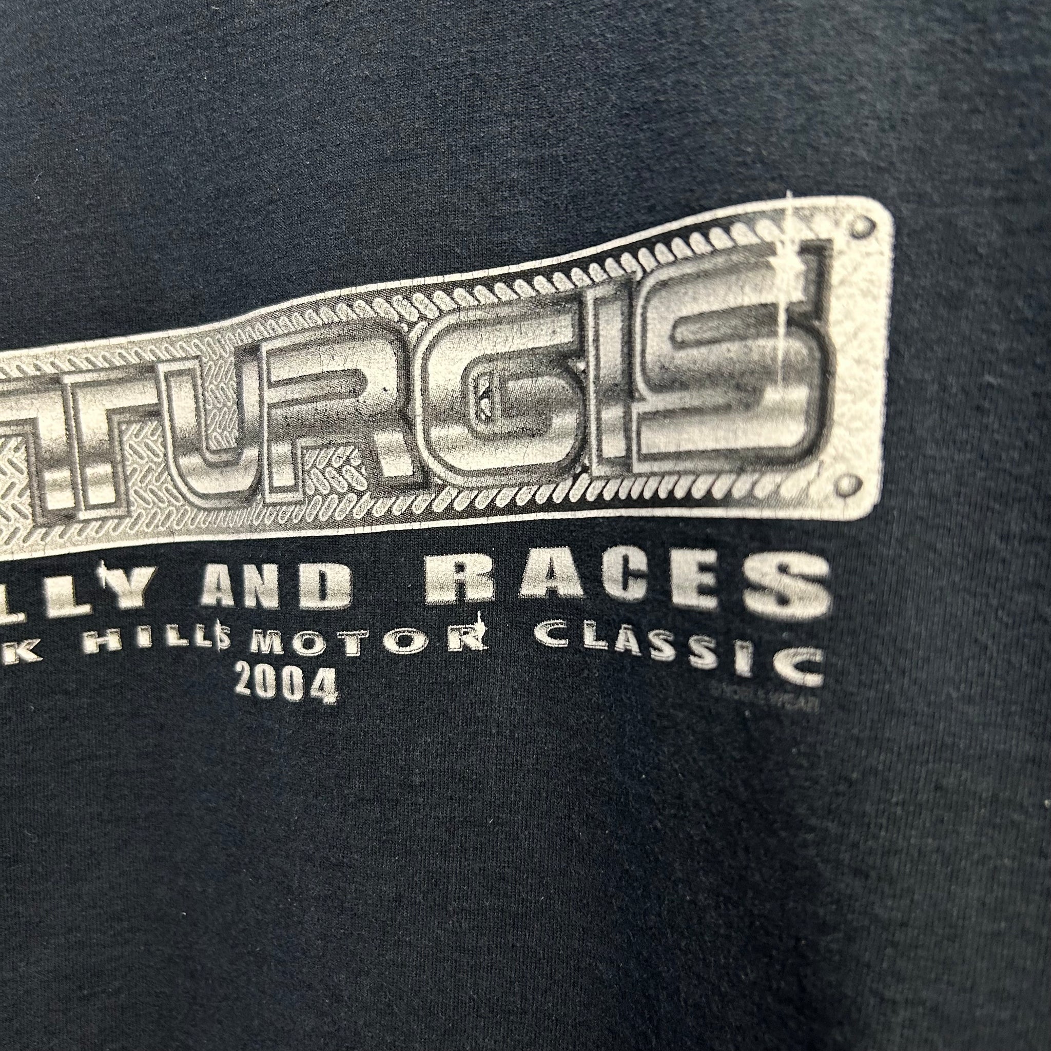 This Y2K 04' Sturgis Biker Tee Size Large is perfect for any motorcycle enthusiast; featuring a biker design and a metal cross on the back of the tee that add a cool and unique touch.Perfect for all the hikers out there or anyone on the biker aesthetic!