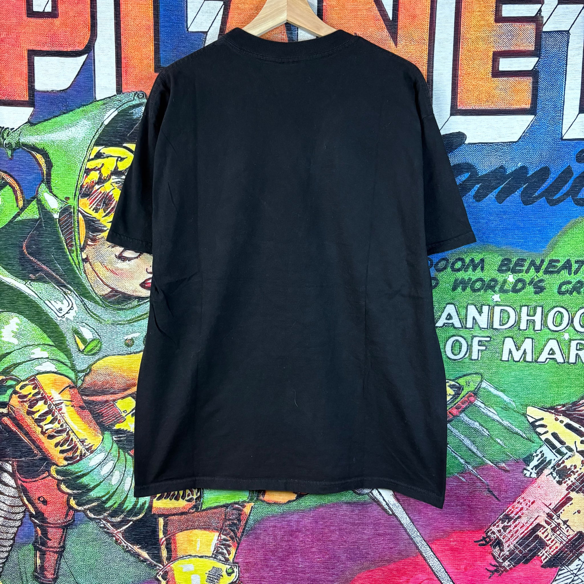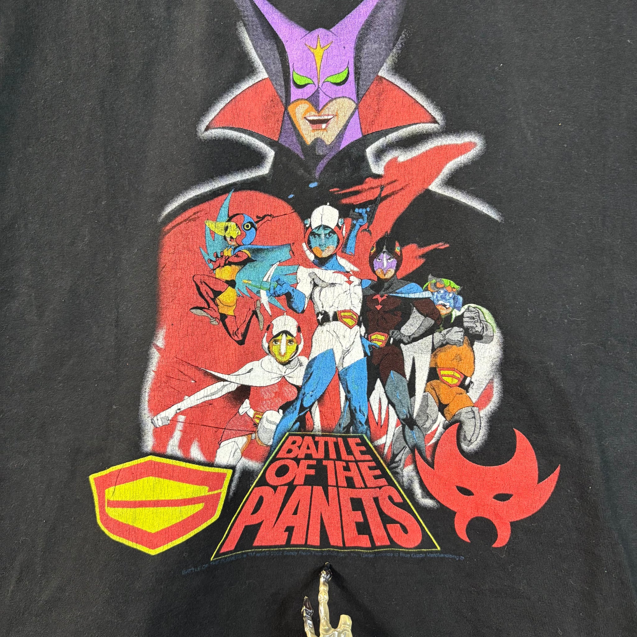 Y2K 2002 black t-shirt featuring a bold graphic of the characters from the classic anime Battle of the Planets (aka Science Ninja Team Gatchaman). Made from soft, worn-in cotton with a relaxed early-2000s fit, this tee perfectly captures the nostalgic Y2K anime and streetwear vibe. A must-have for fans of retro animation and vintage Y2K style.