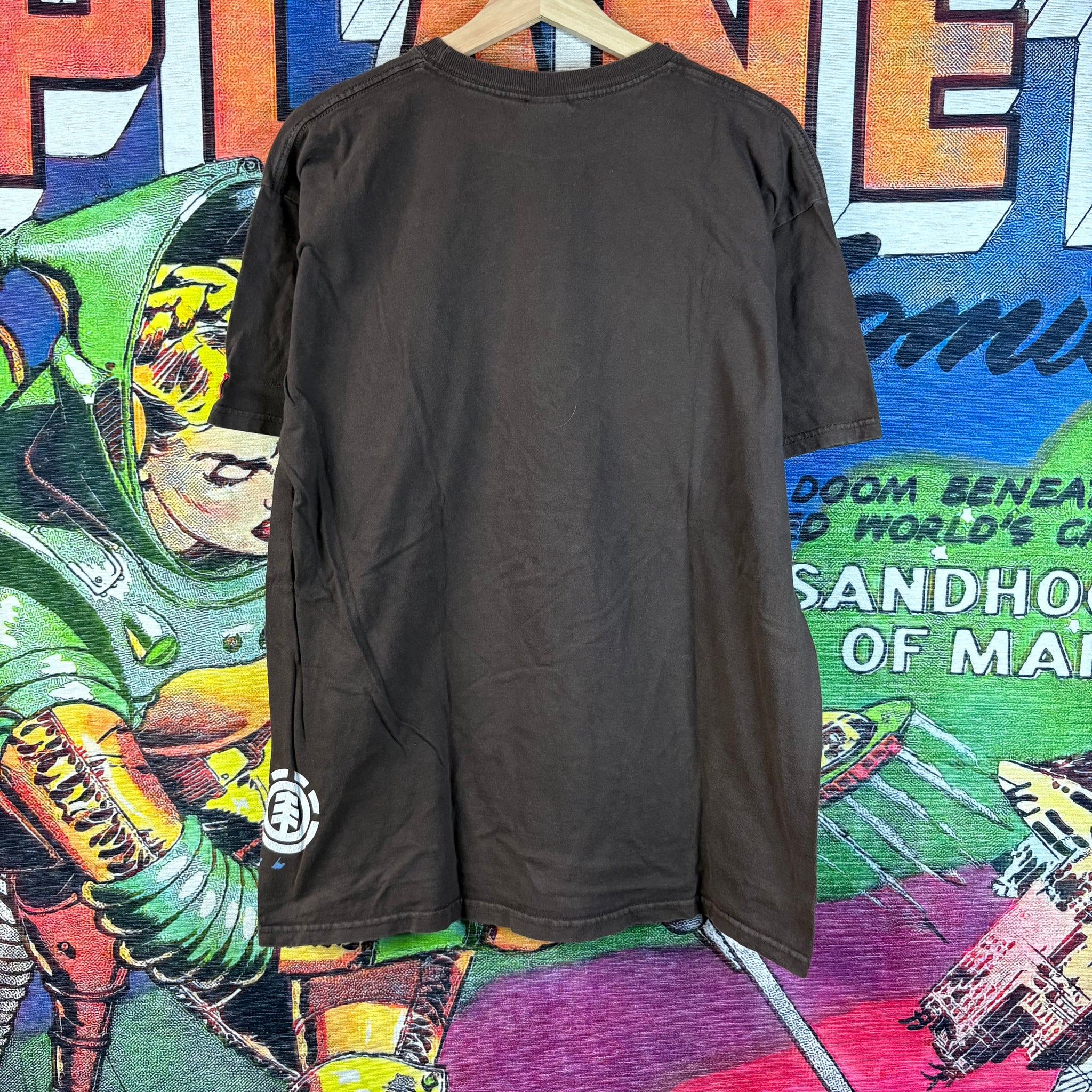 Vintage Element Skateboards t-shirt featuring the classic Element logo surrounded by a subtle all-over pattern of small birds. A unique and timeless piece that blends skate culture with vintage style.