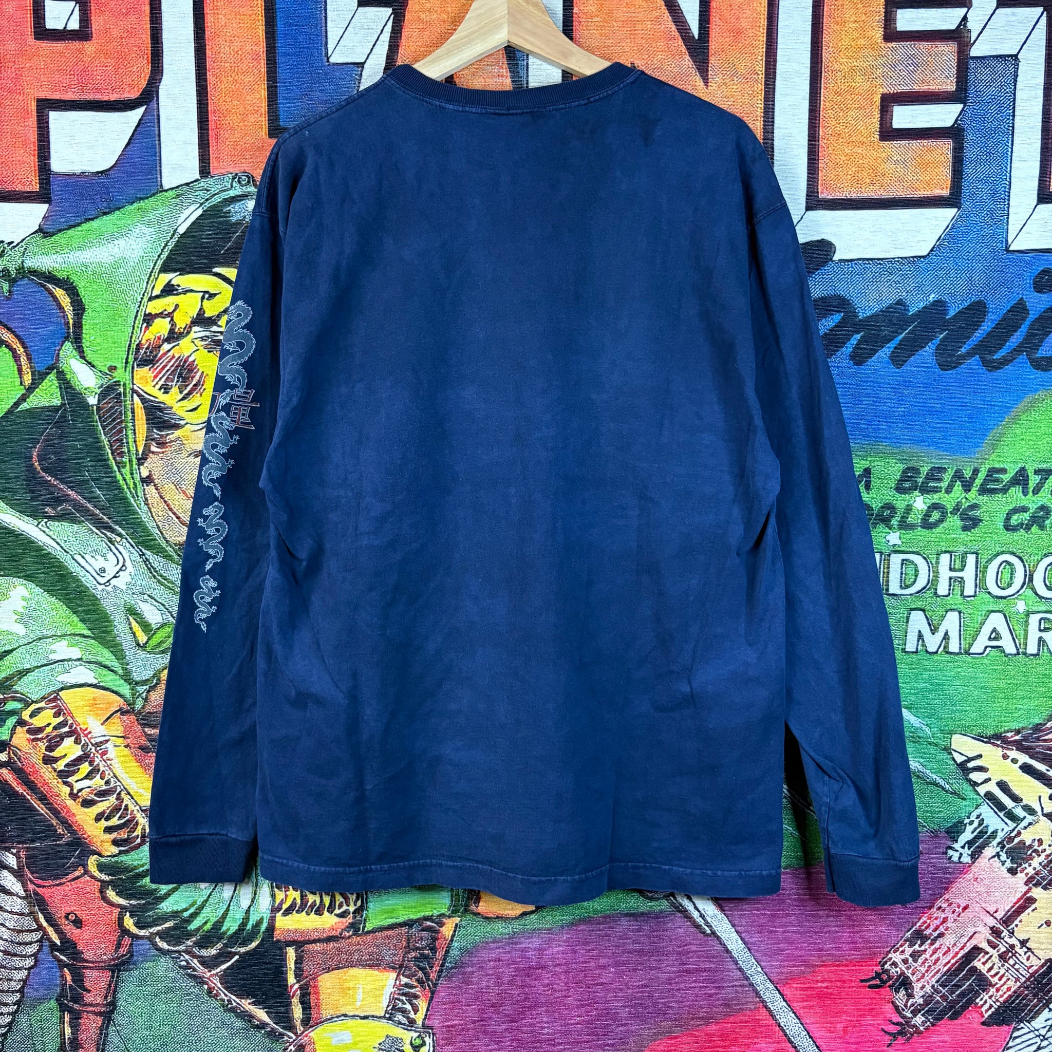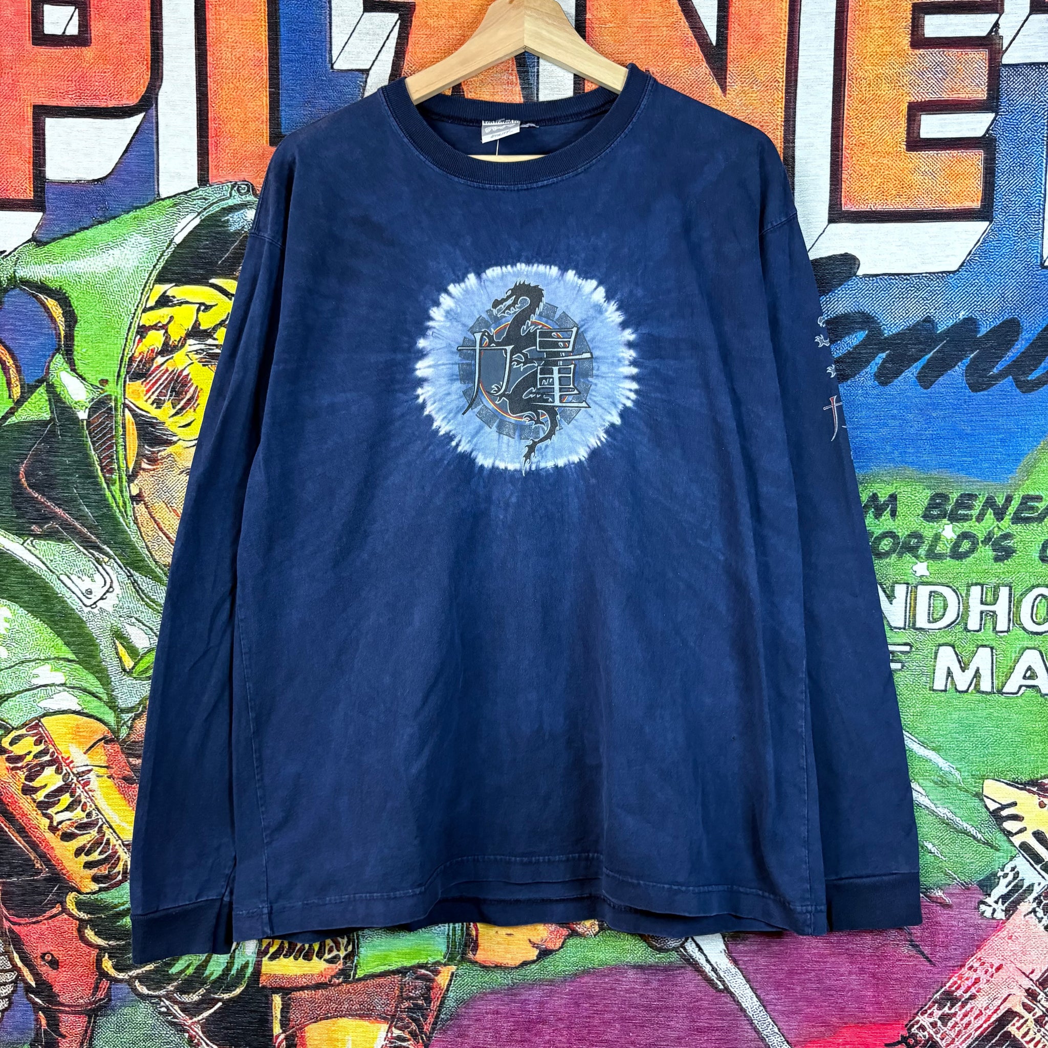 Y2K Utility Dragon long sleeve graphic t-shirt in size Large, featuring a bold dragon design with early-2000s streetwear vibes. Made from soft, worn-in cotton with a relaxed fit, this piece perfectly captures the vintage Y2K aesthetic. Ideal for layering or rocking solo as a statement graphic tee.
