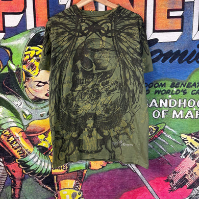 Y2K Deadliest Grunge Skull & Cross Tattoo Style Thrashed Tee Size