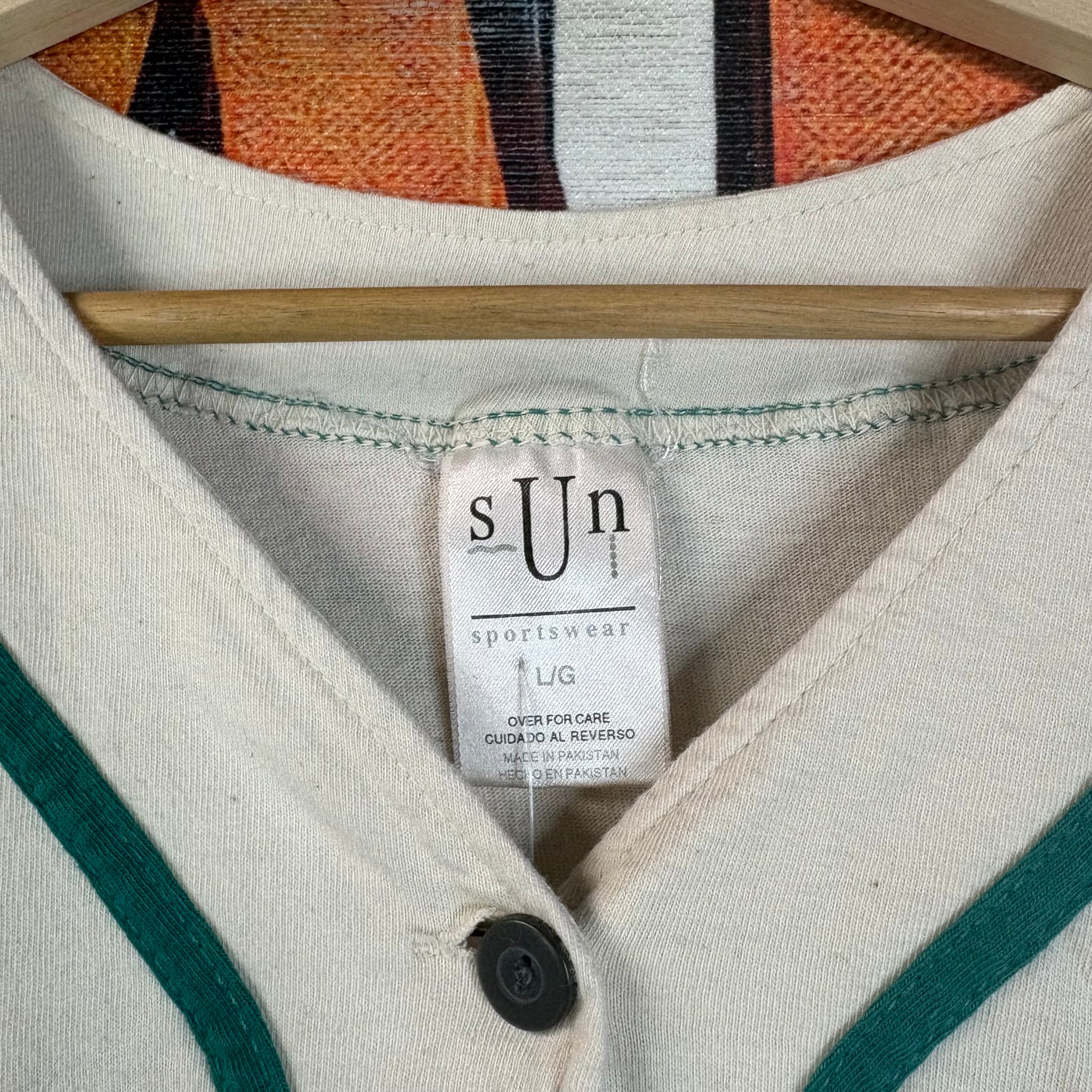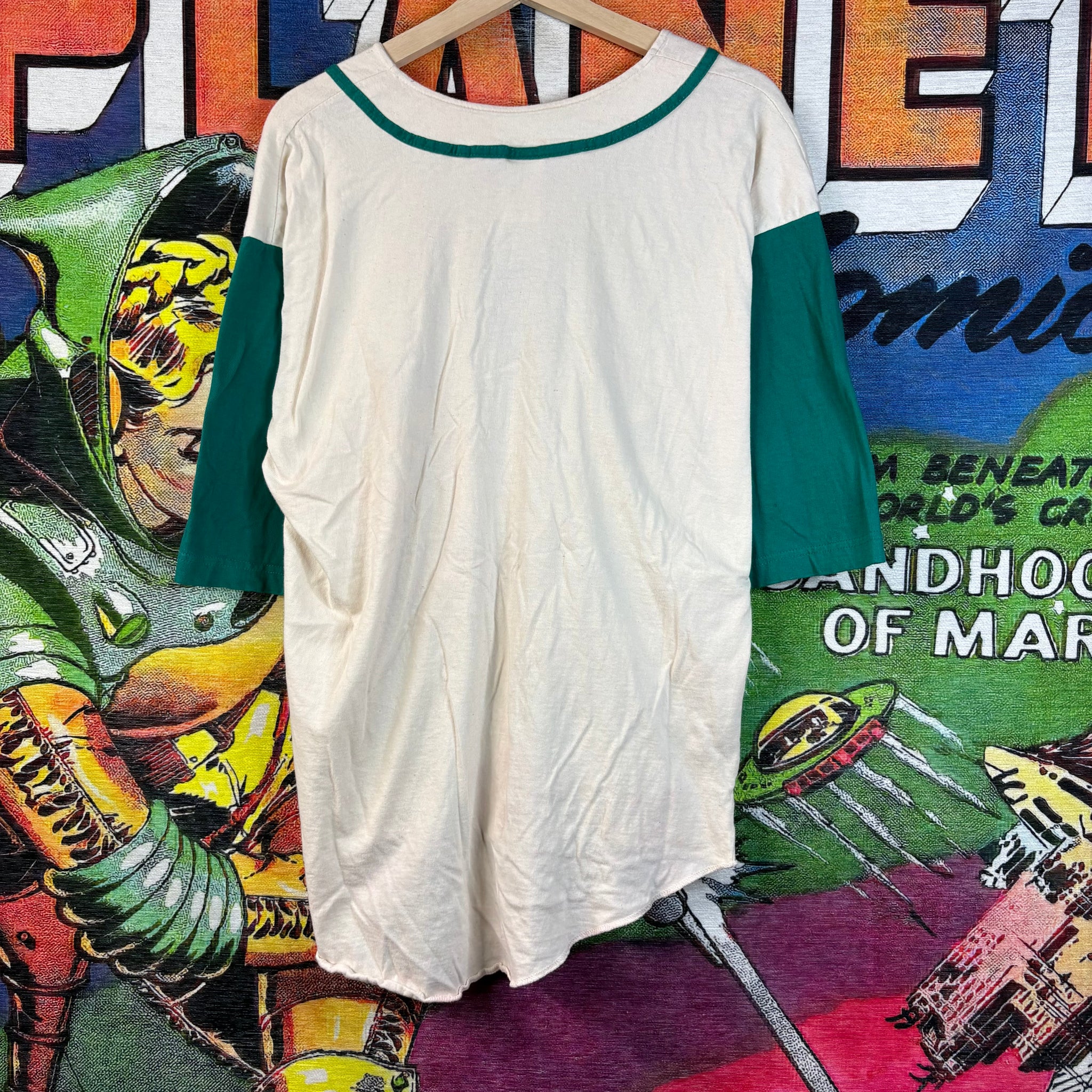 Get ready for some serious nostalgia with this awesome vintage 1994 Looney Tunes baseball jersey! This cream and forest-green button-up features classic graphics of Bugs Bunny and the Tasmanian Devil on the front, instantly transporting you back to the '90s. It’s the perfect, oversized piece of retro streetwear that's guaranteed to turn heads and start conversations.