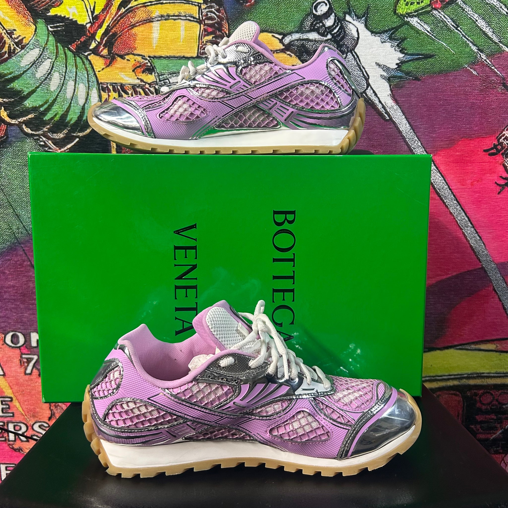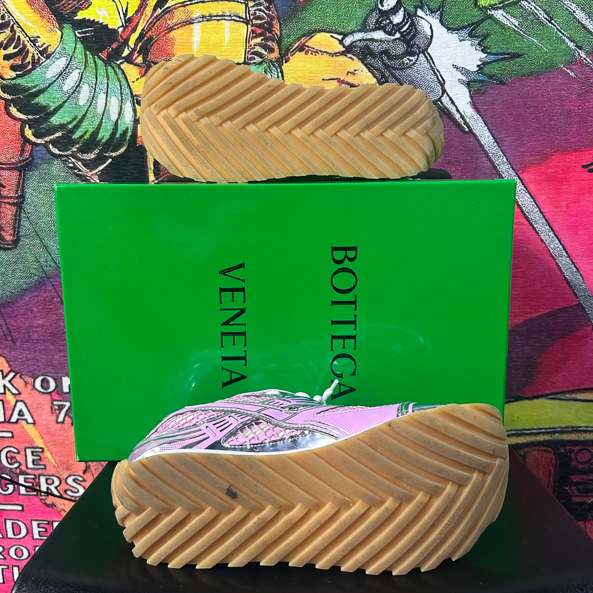 A standout modern silhouette from Bottega, the Orbit sneaker is known for its chunky futuristic design, breathable mesh upper, and sculpted sole. The pink colorway is especially rare and highly sought after.