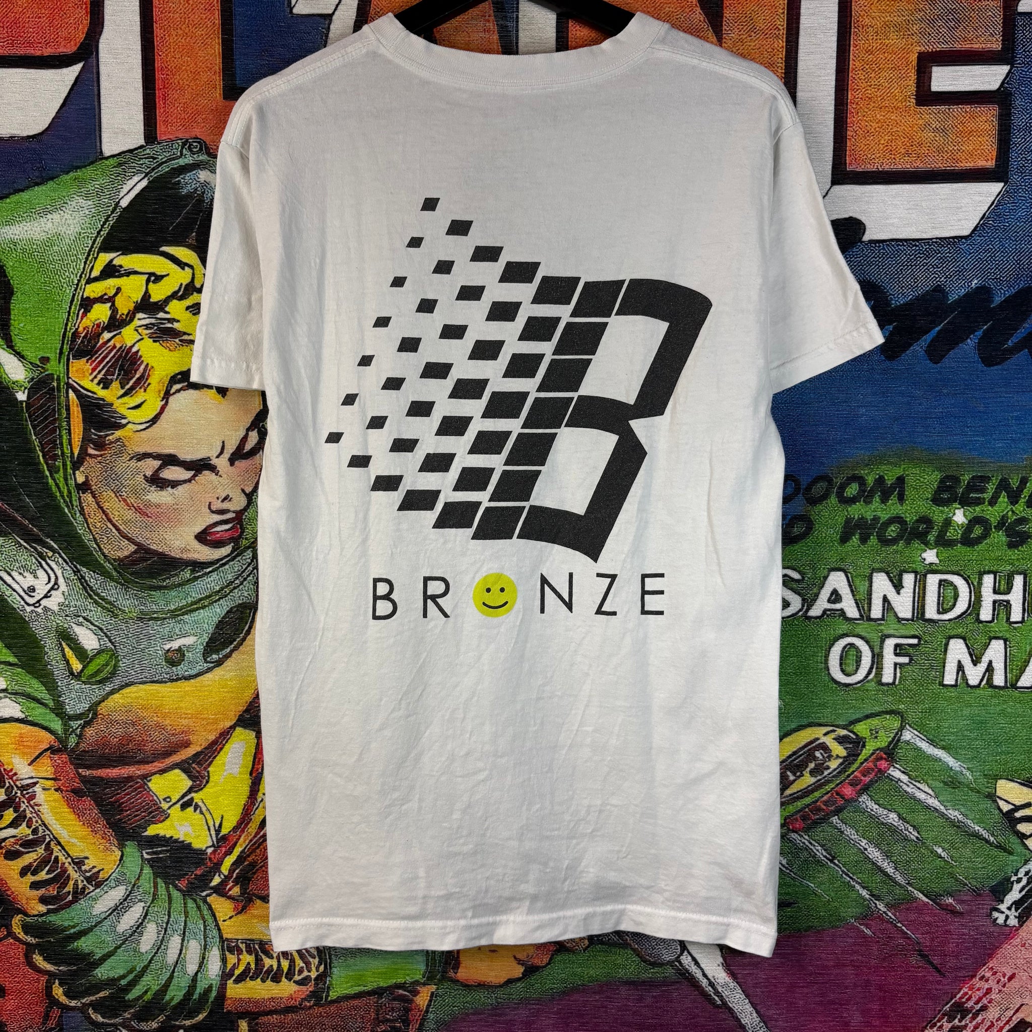 This Bronze 56k T-shirt instantly grabs attention with its striking Windows 95/98-inspired glitch graphic featuring a stylized 'B' that embodies the brand's unique retro-tech aesthetic. The iconic design, finished with the "BRONZE" text and a subtle smiley face, makes this white tee a must-have piece of skatewear for any fan of nostalgic internet and computer culture.