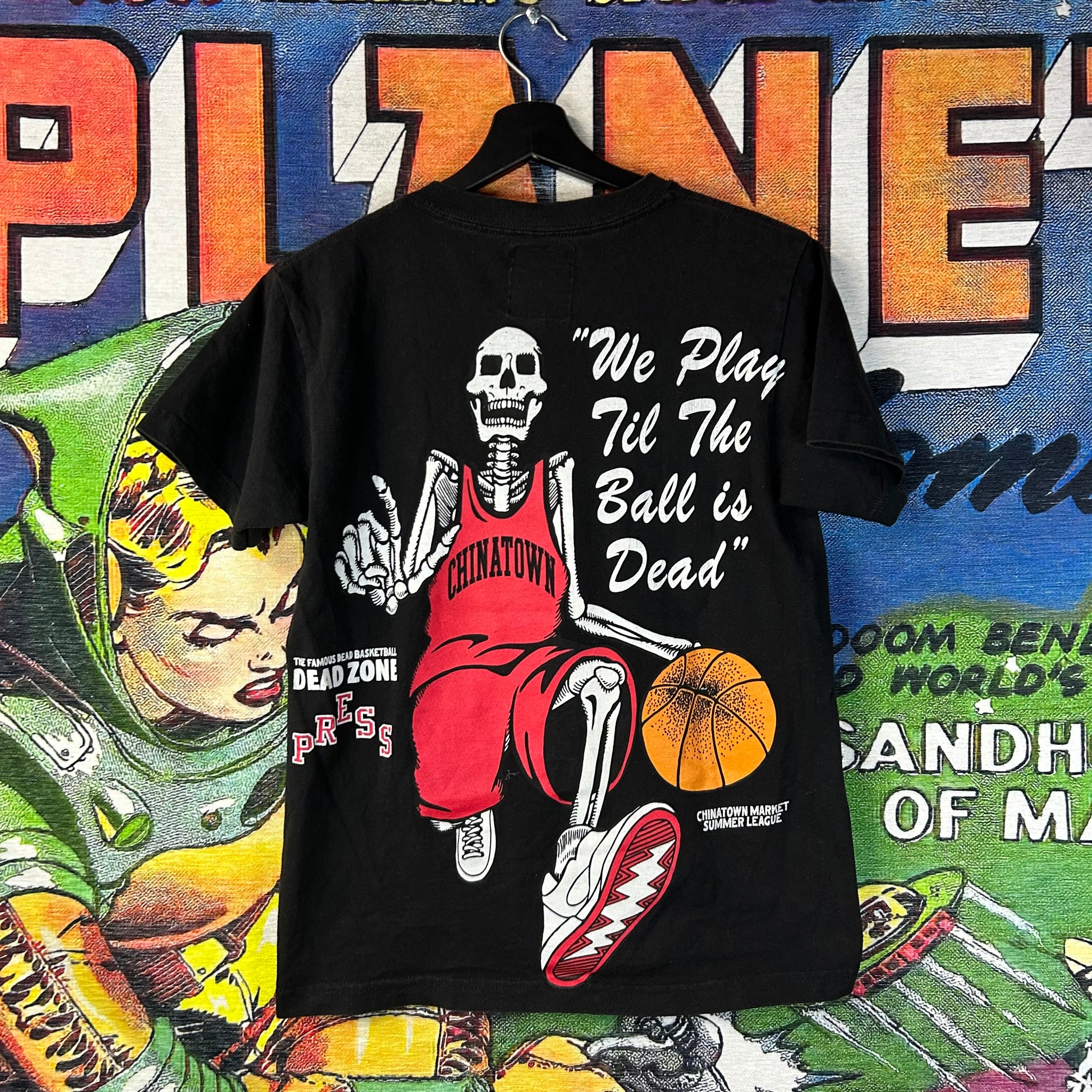 A unique collaboration tee combining Chinatown Market’s playful aesthetic with Grateful Dead graphics. Features a basketball-inspired design with vibrant prints on soft cotton fabric. Casual fit, perfect for fans of streetwear and band merch.