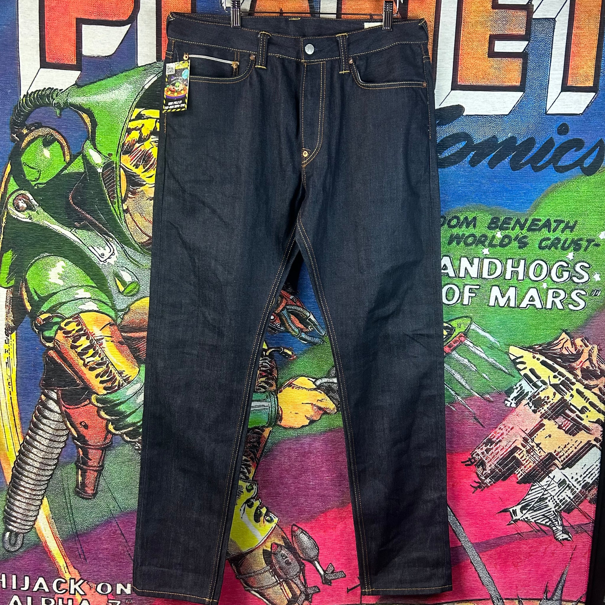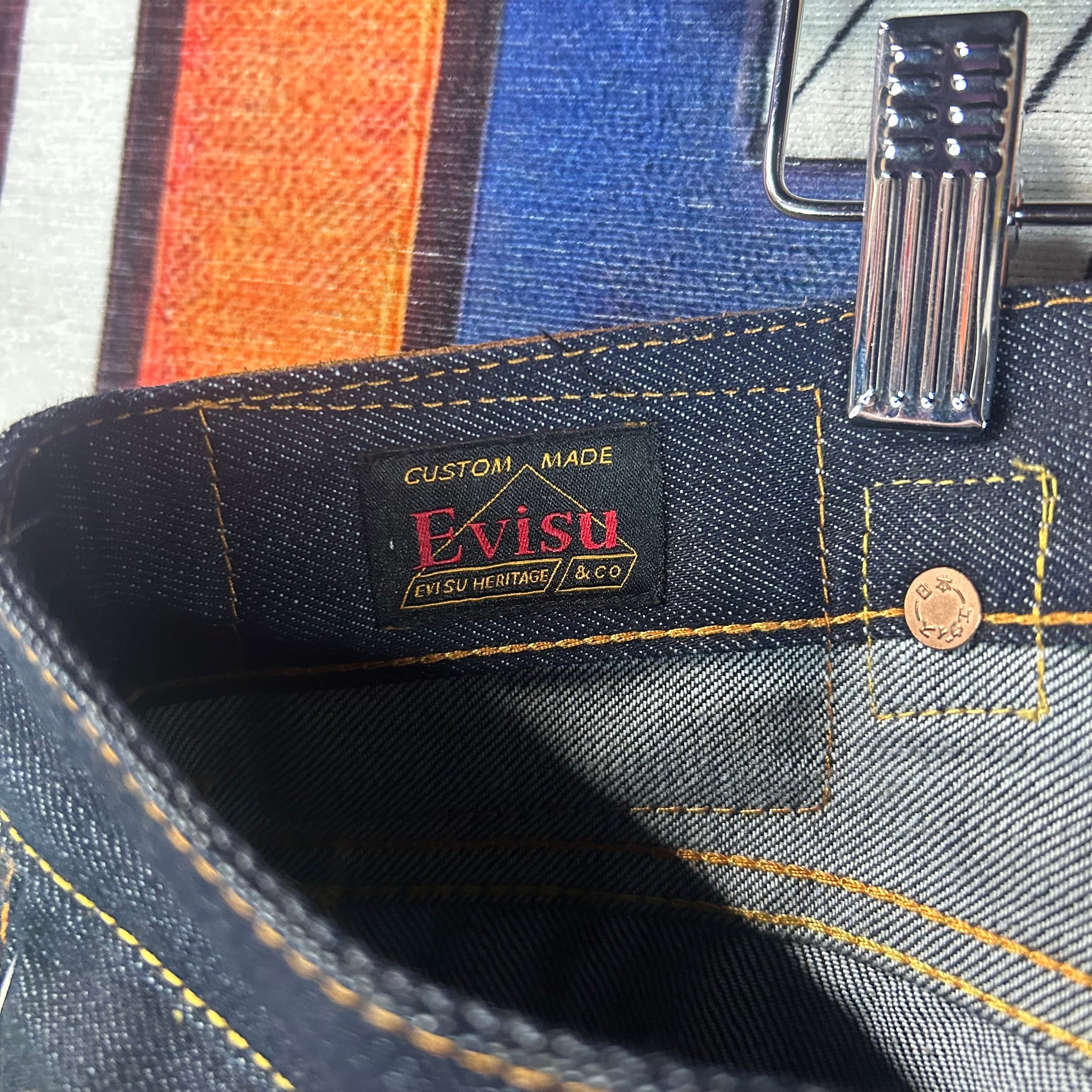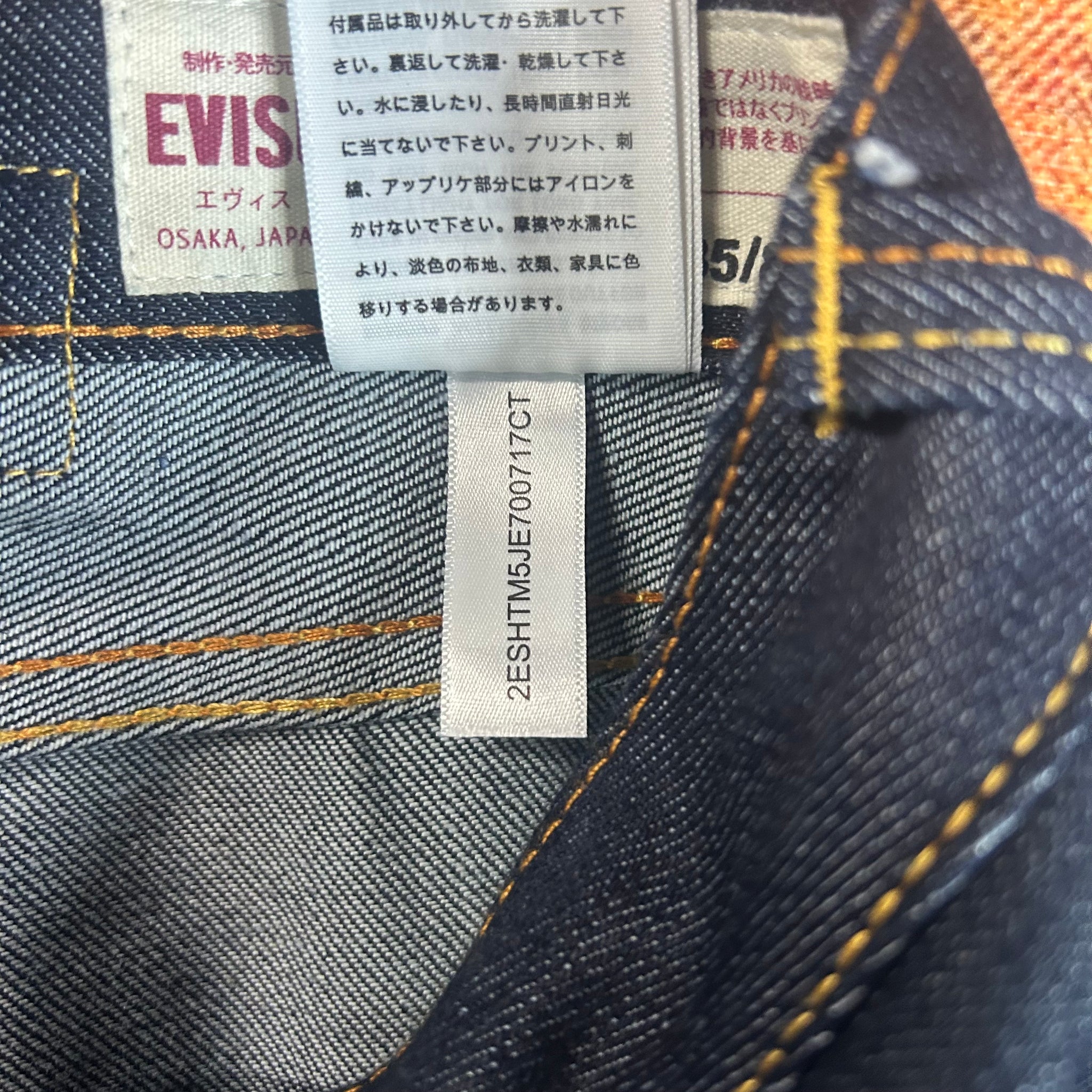 Evisu jeans featuring the signature seagull print embroidery and a classic straight fit. Crafted from premium Japanese denim for durability and iconic streetwear style. All flaws if any shown in photos.