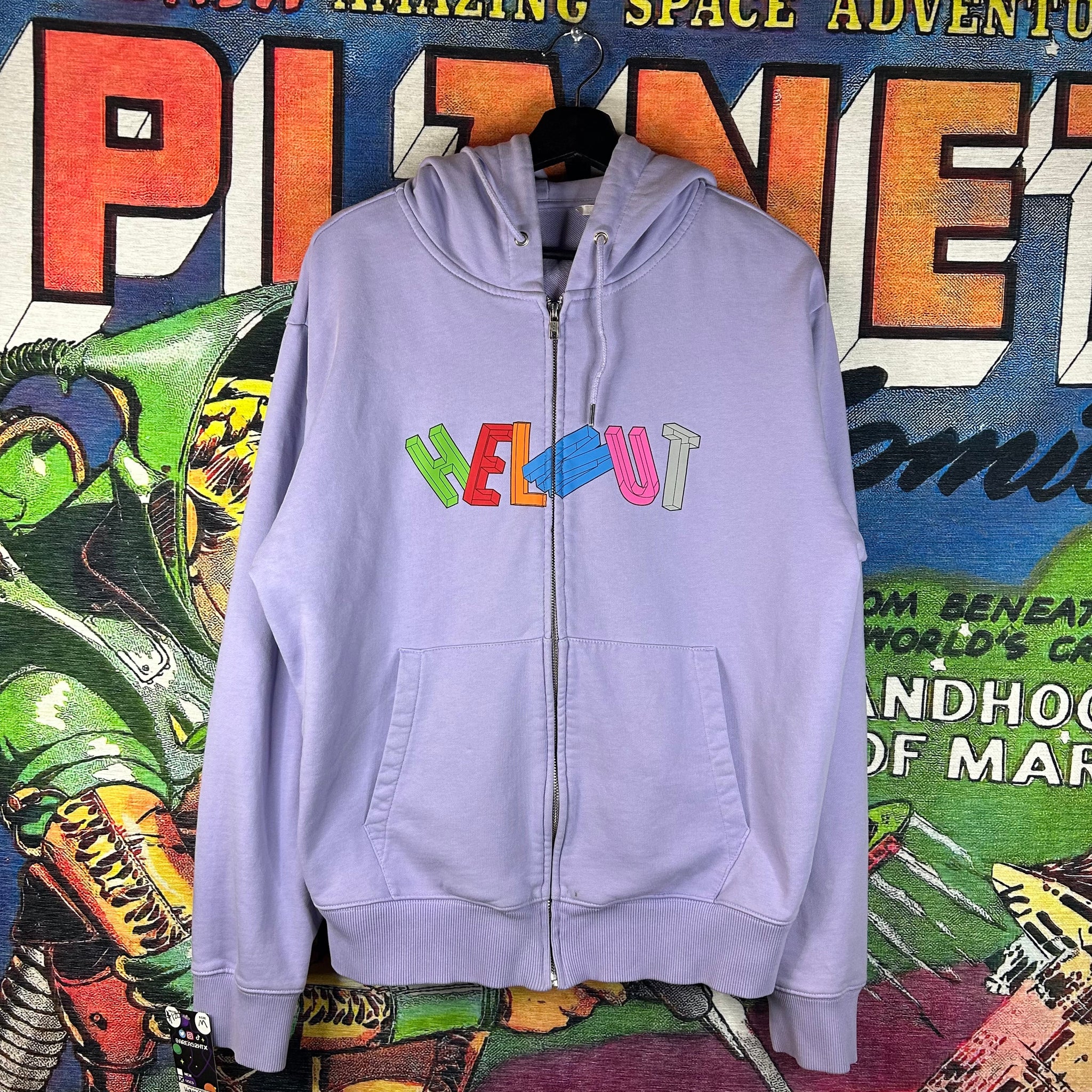 Upgrade your wardrobe with this designer Helmut Lang ‘3D’ Zip Up Hoodie. Featuring the iconic ‘3D’ design, this medium-sized hoodie is perfect for any fashion-forward individual. Elevate your look and make a bold statement with Helmut Lang.
